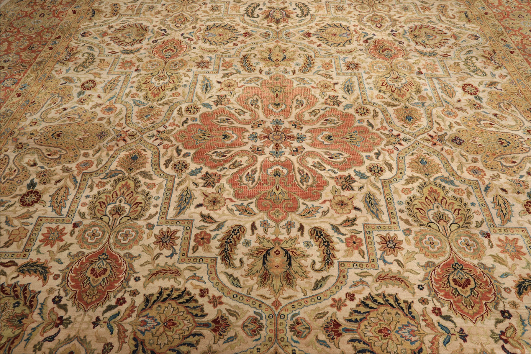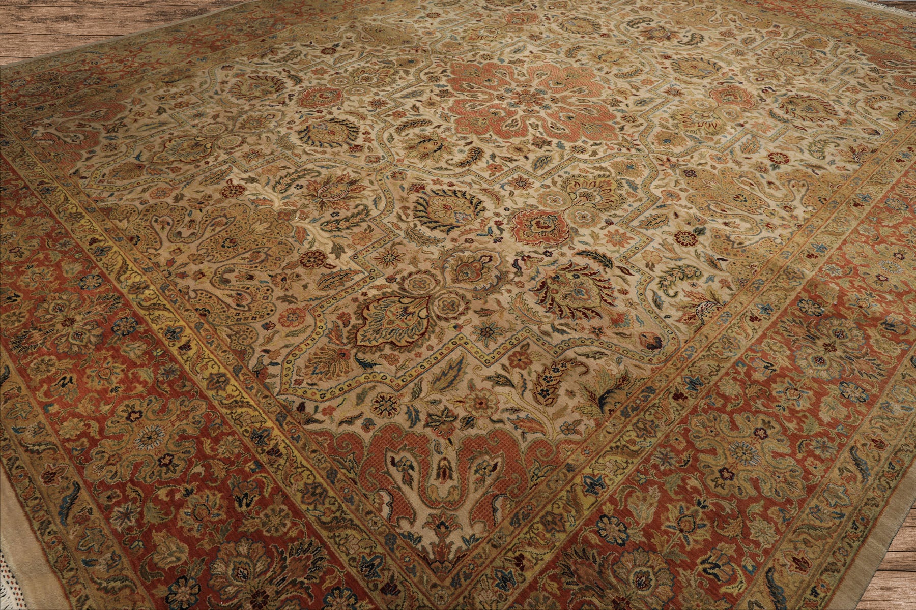 Story Behind the Art: Emerging from the historic city of Agra, India, these rugs represent the artistic fusion of Mughal opulence and Persian refinement. The weaving tradition flourished during the reign of Emperor Akbar in the late 16th century, when imperial workshops in Agra, Delhi, and Lahore produced carpets that rivaled Persia’s finest. Over time, Indian artisans developed a distinct signature characterized by silky wool textures, vibrant color palettes, and meticulous floral and vine motifs. The classic Agra rug is distinguished by its symmetrical tendrils, scrolling leaves, and large blossoms framed by intricate borders—all executed with extraordinary clarity and depth. Blending historical grandeur with timeless craftsmanship, hand-knotted Agra rugs remain highly sought after by collectors and designers seeking heritage artistry for contemporary interiors.