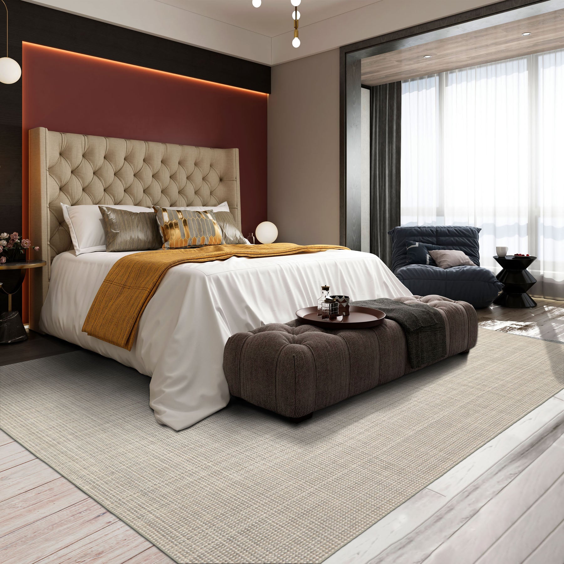 Elevate your floors with this posh and elegant rug! A blend of modern style and subtle sophistication, it adds a touch of charm and glamour to any space. With neutral tones and a minimalist design, this rug is an ideal choice for living rooms, bedrooms, and entryways. Handmade in India, it features a quarter-inch thickness and sheds minimally. Crafted from New Zealand wool, the plush pile offers luxurious comfort underfoot, while its durability ensures it stands up to high-traffic areas, aging beautifully over time.