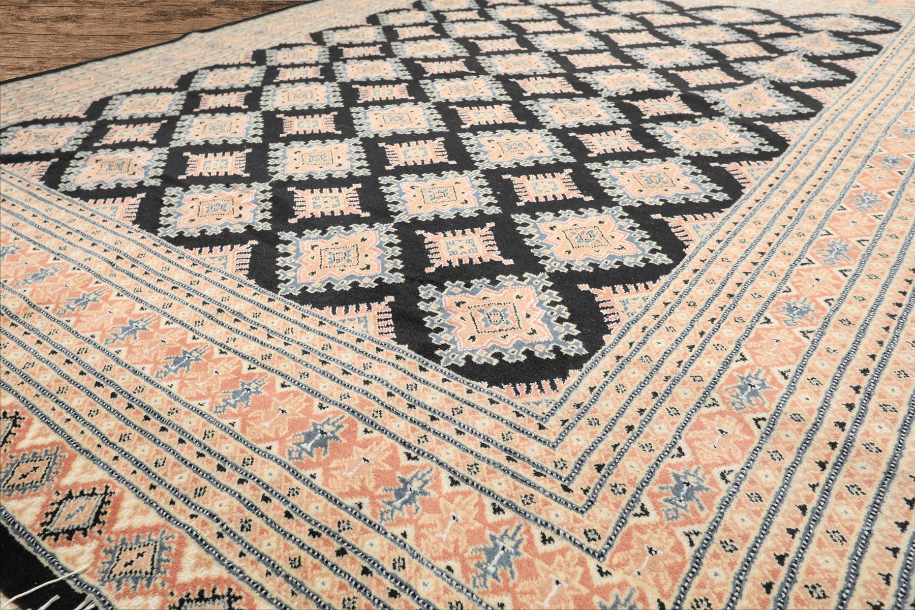 Story Behind the Art: The term Bokhara rug traditionally refers to carpets woven in the style of the Tekke tribe of Central Asia, originating near the city of Bokhara. Recognized for their repeating octagonal “gul” and “elephant’s foot” motifs, Bokhara rugs feature symmetrical layouts that symbolize tribal heritage and rhythm. Modern Bokhara-style rugs are produced in Pakistan, Iran, Afghanistan, India, and Turkey, with each region adding subtle distinctions—whether in color, foundation yarns (cotton, silk, or wool), or pile height. Their hallmark remains the same: fine knotting, sheen-rich wool, and geometric repetition that creates a balanced, timeless design. Today, Pakistani Bokhara wool rugs are globally admired for their silky texture, durability, and striking visual harmony.