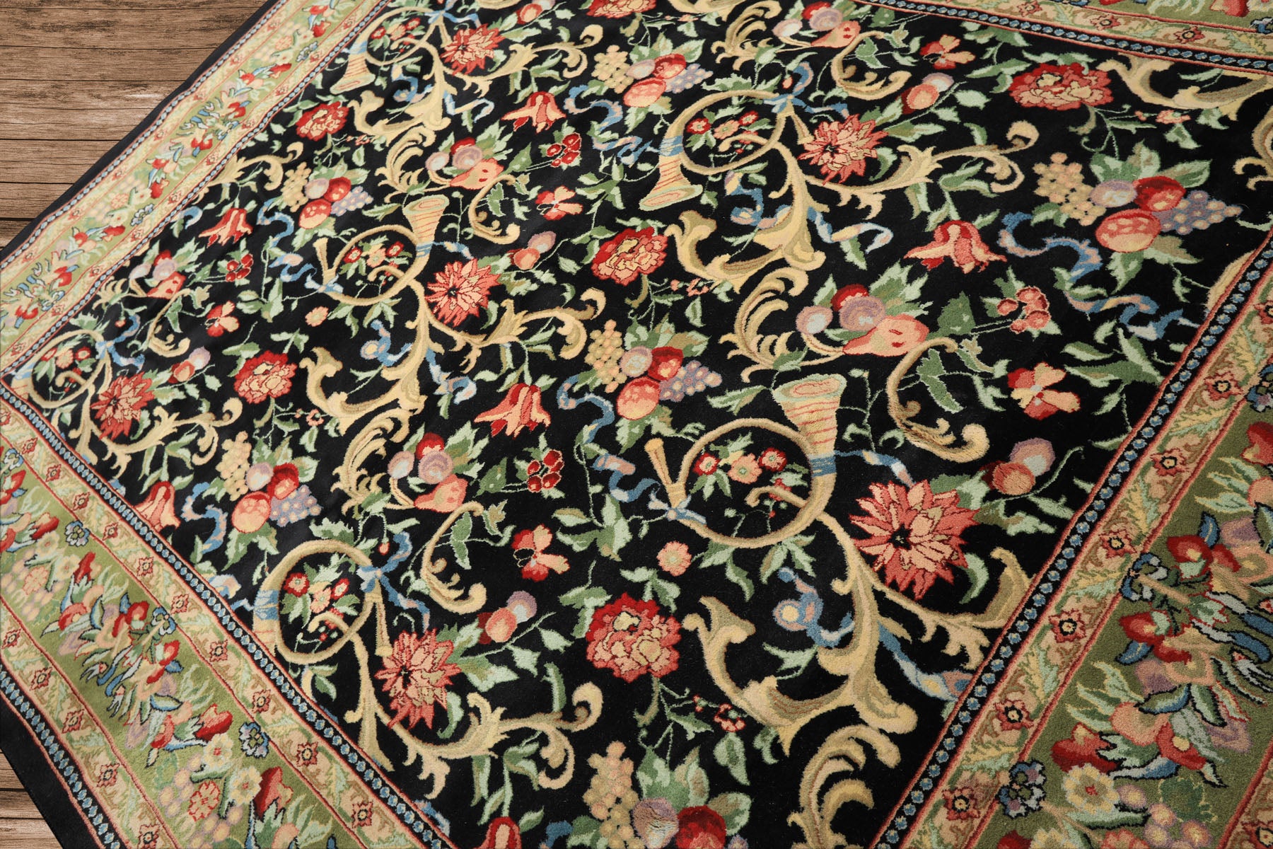Story Behind the Art: The Savonnerie rugs of France represent one of the most prestigious weaving traditions in Europe. Originating in the Savonnerie Manufactory (1650–1685), these hand-knotted wool carpets were once reserved for royal palaces and grand estates. Distinguished by three-dimensional floral medallions, baroque scrolls, and elaborate borders, their designs combine rich blues, blacks, and browns with vivid bouquets of color. The Aubusson Savonnerie style introduced the innovative technique of depth perspective, giving motifs an illusion of dimension and sculptural beauty. Characterized by their symmetrical knots, luxurious materials, and opulent compositions, French Savonnerie rugs continue to be revered today, with skilled reproductions handcrafted in India, Pakistan, and China to preserve their majestic aesthetic.