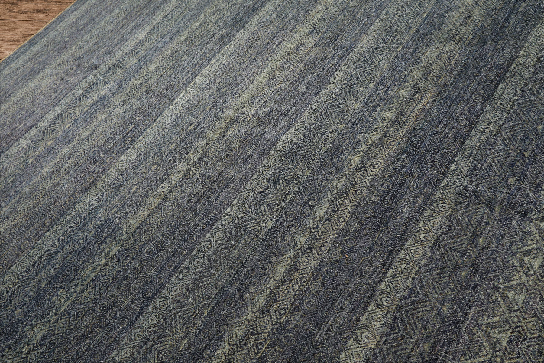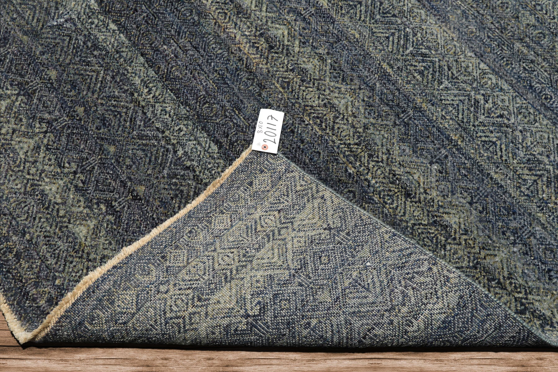 Defined by harmony and texture, this 8x10 hand-knotted Peshawar wool rug captures the essence of transitional artistry. Handcrafted from pure wool on a cotton base, it features a low 0.25-inch pile with a subtle blue gradient interwoven with earthy mineral tones. The geometric symmetry and abrash variations reflect authentic hand-knotting traditions, while its modern palette complements neutral and coastal interiors alike. Ideal for living rooms, dining spaces, or minimalist designs, this Peshawar handmade wool rug brings organic warmth, visual depth, and artisan quality to every setting.