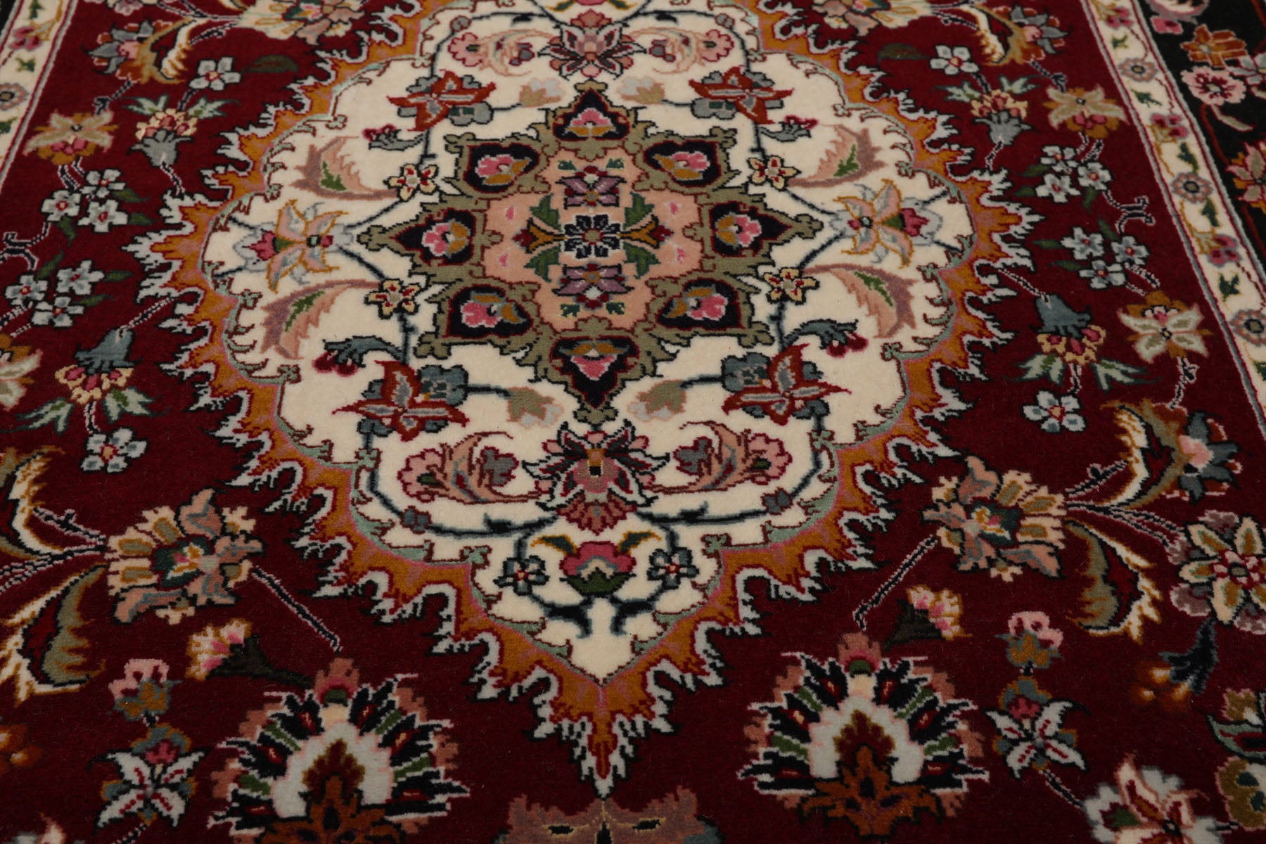 Story Behind the Art: Woven in the historic city of Tabriz these rugs represent the pinnacle of Persian artistry and technical mastery. Celebrated for their exceptionally fine knotting often among the highest in the Persian tradition they allow for breathtaking precision and flowing curvilinear designs. Gracefully classical medallions intricate arabesques and delicate floral motifs unfold across luminous palettes of deep indigo rich crimson ivory and soft pastels each composition wonderfully balanced and exquisitely detailed. Revered for centuries Tabriz rugs embody elegance durability and cultural grandeur making them enduring treasures for both collectors and refined interiors.