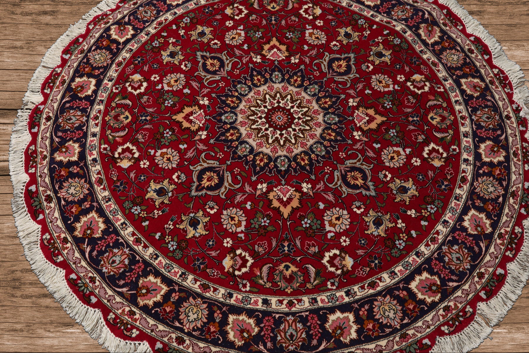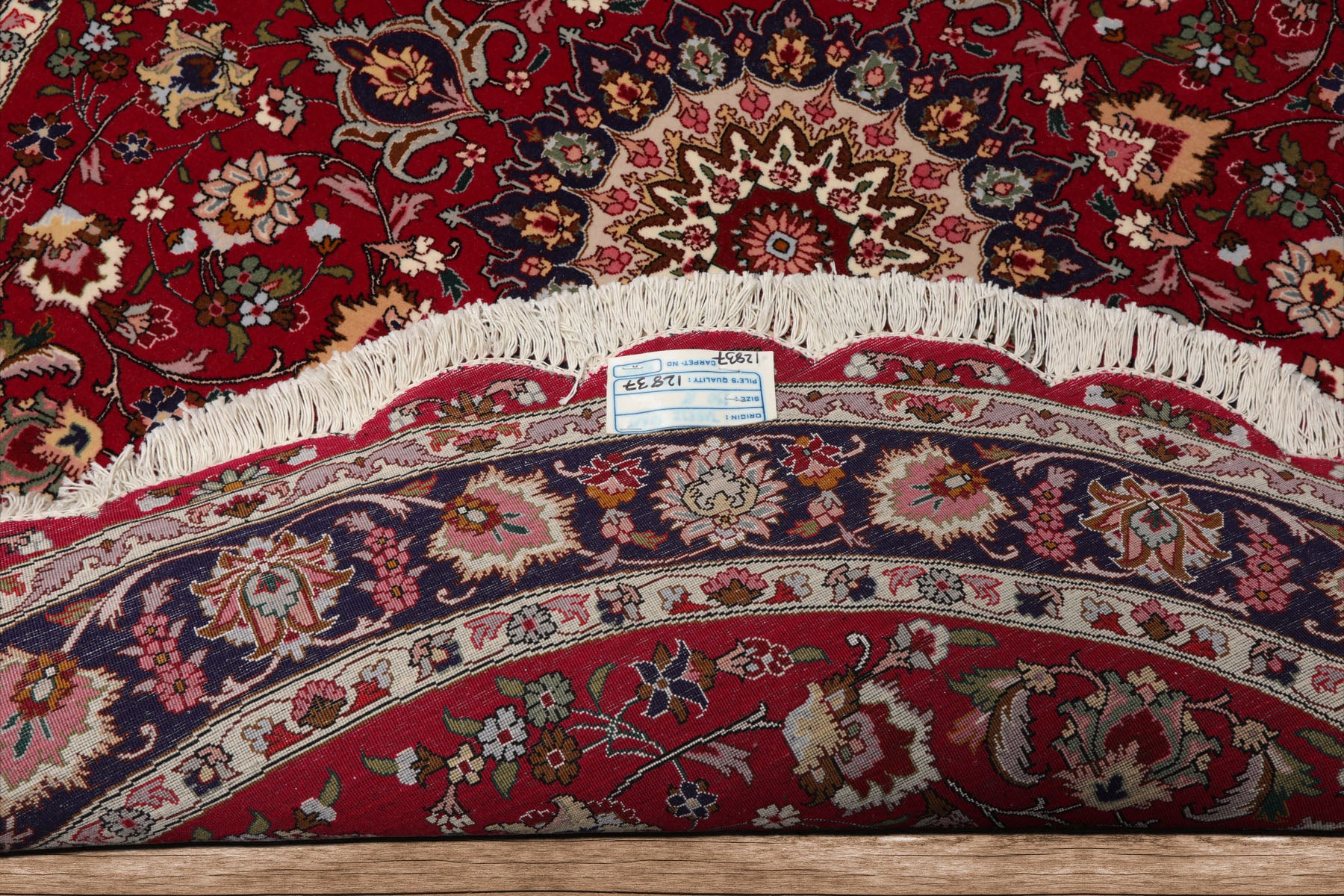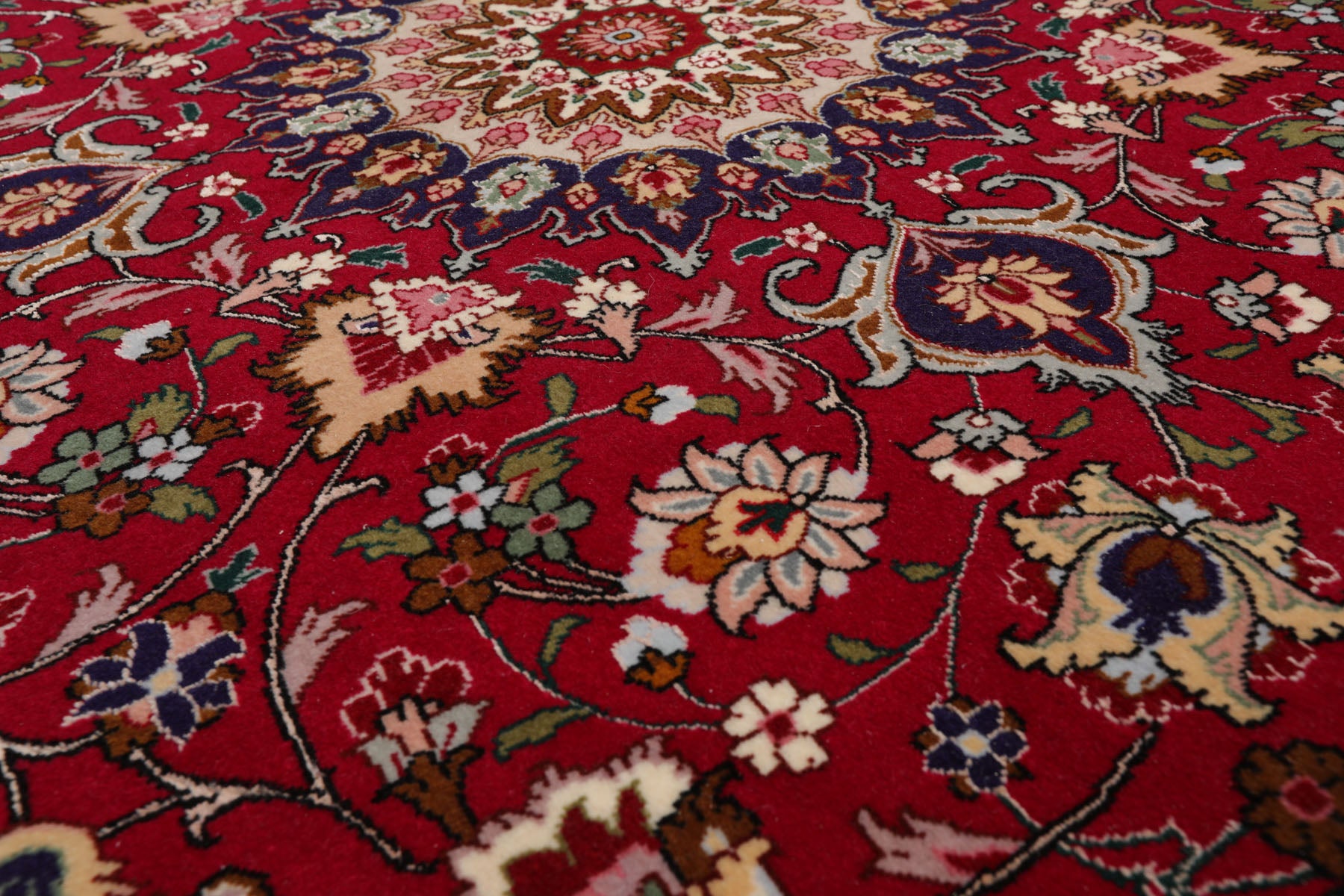 Story Behind the Art: Named after the namesake city of its origins in Iran Tabriz rugs have enjoyed an enduring popularity due to their exceptional quality durability and variety of designs. Gracefully made using Turkish knot instead of the Persian knot Tabriz rugs exhibiting great consistency and wonderful symmetrical pattern are thinner and lighter than other Persian rugs. Color palette can vary from very bold and contrasting shades to subtle and even pastel coloring. The designs embrace a diverse range of Persian rug motifs from classic medallion to all-over patterns with palmettes integrated into the borders.
