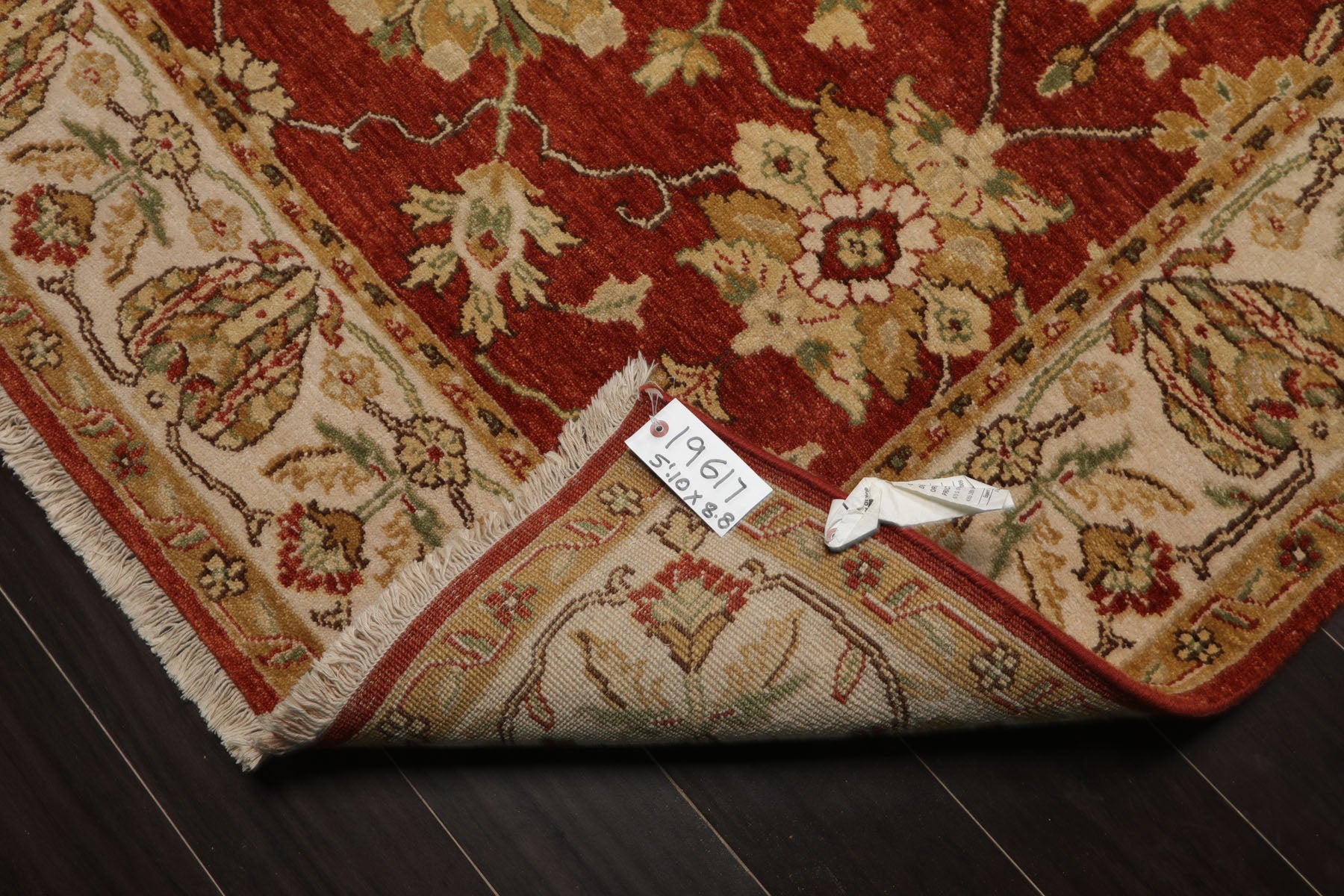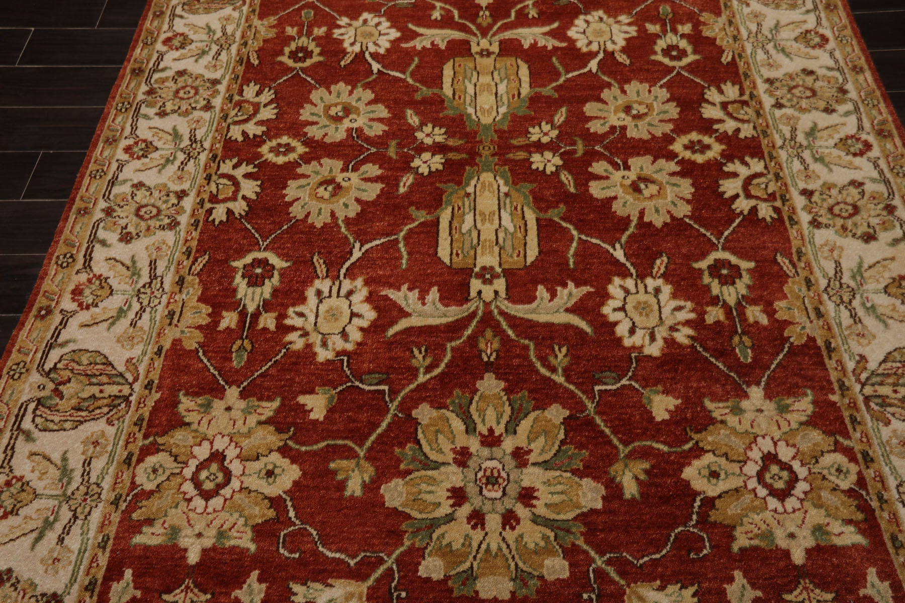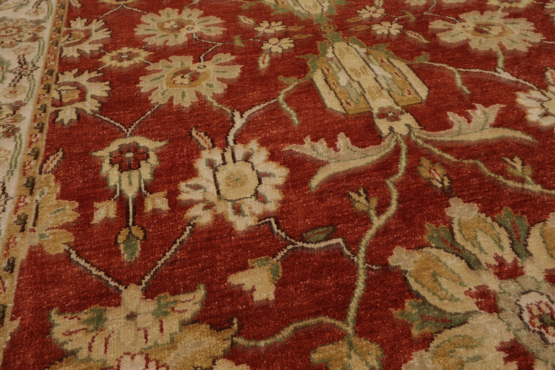 Story Behind the Art: The Indian rug tradition reached its pinnacle during the Mughal era, especially under Emperor Akbar, who founded major weaving centers in Agra, Delhi, and Lahore in the late 16th century. Though initially inspired by Persian designs, Indian weavers soon developed a distinctive artistic identity by the 17th century. They introduced finer knotting techniques, silk-like wool, vibrant colors, and naturalistic motifs—hallmarks that came to define the Indian rug aesthetic. This blend of exquisite craftsmanship and original design established Indian rugs as timeless works of art admired around the world. Among the finest are **Agra rugs**, which beautifully unite the grandeur of Persian influence with Indian artistry. Characterized by flowing floral tendrils, scrolling leaves, angular vines, and large, detailed blossoms framed by bold borders, Agra rugs feature balanced, all-over patterns that exude refined elegance and intricate sophistication.