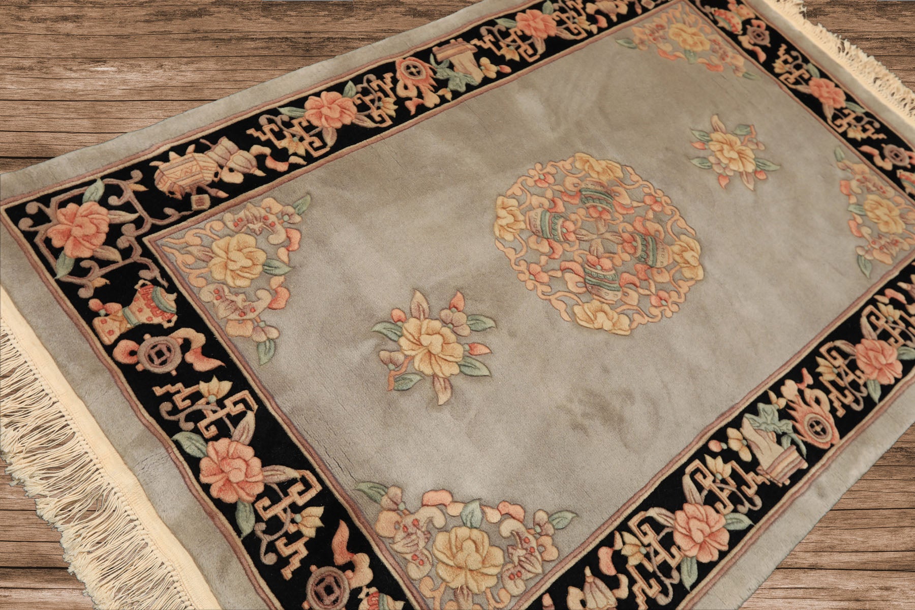 A richly detailed expression of French Aubusson–Savonnerie refinement, this 4x6 hand-knotted wool rug—available through LoomBloom—combines botanical artistry with the luxurious presence of a deep plush pile. The serene gray field creates a soft backdrop, allowing the central medallion and floral arrangements in taupe, ivory, mint, and blush to unfold with elegance and subtle dimensional shading. Each motif reflects the sculptural quality associated with Savonnerie weaving, where fine gradations of color and contour mimic the depth of antique European tapestries.