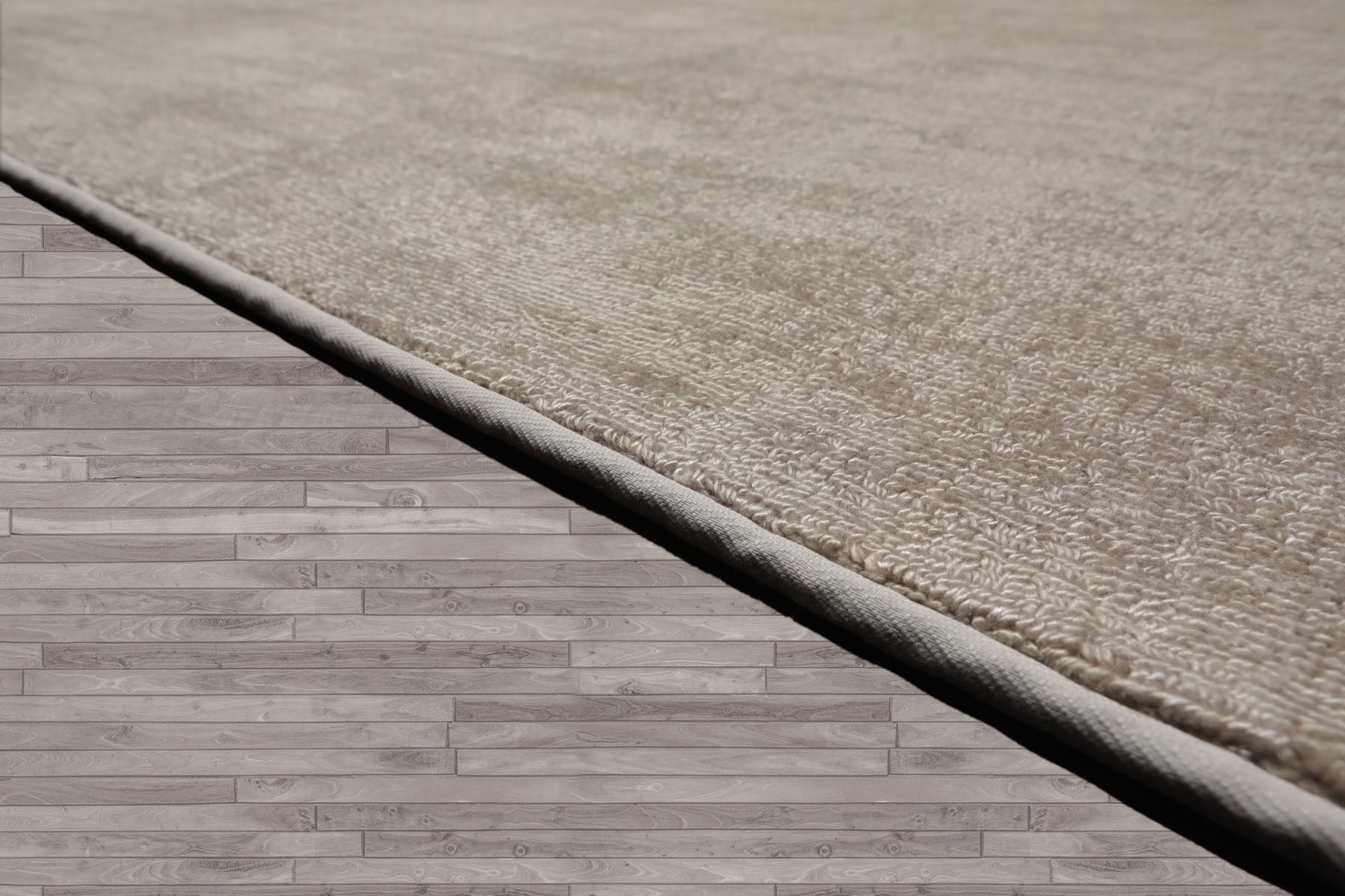 The contemporary Designer Textures rug in beige and gray, crafted in India, features a sophisticated ribbed and textured design that elevates the visual appeal of any space. Made from premium New Zealand wool, this rug combines loop and cut pile to create a stunning balance of depth and softness. The loop pile provides stability, while the cut pile adds a plush, welcoming feel, making it perfect for living rooms, bedrooms, or areas where both comfort and style are essential. The soft gray and beige tones work together effortlessly, offering versatility to complement various interior styles. This handmade rug is highly durable, designed to withstand heavy foot traffic without shedding, and maintains its luxurious look for years.