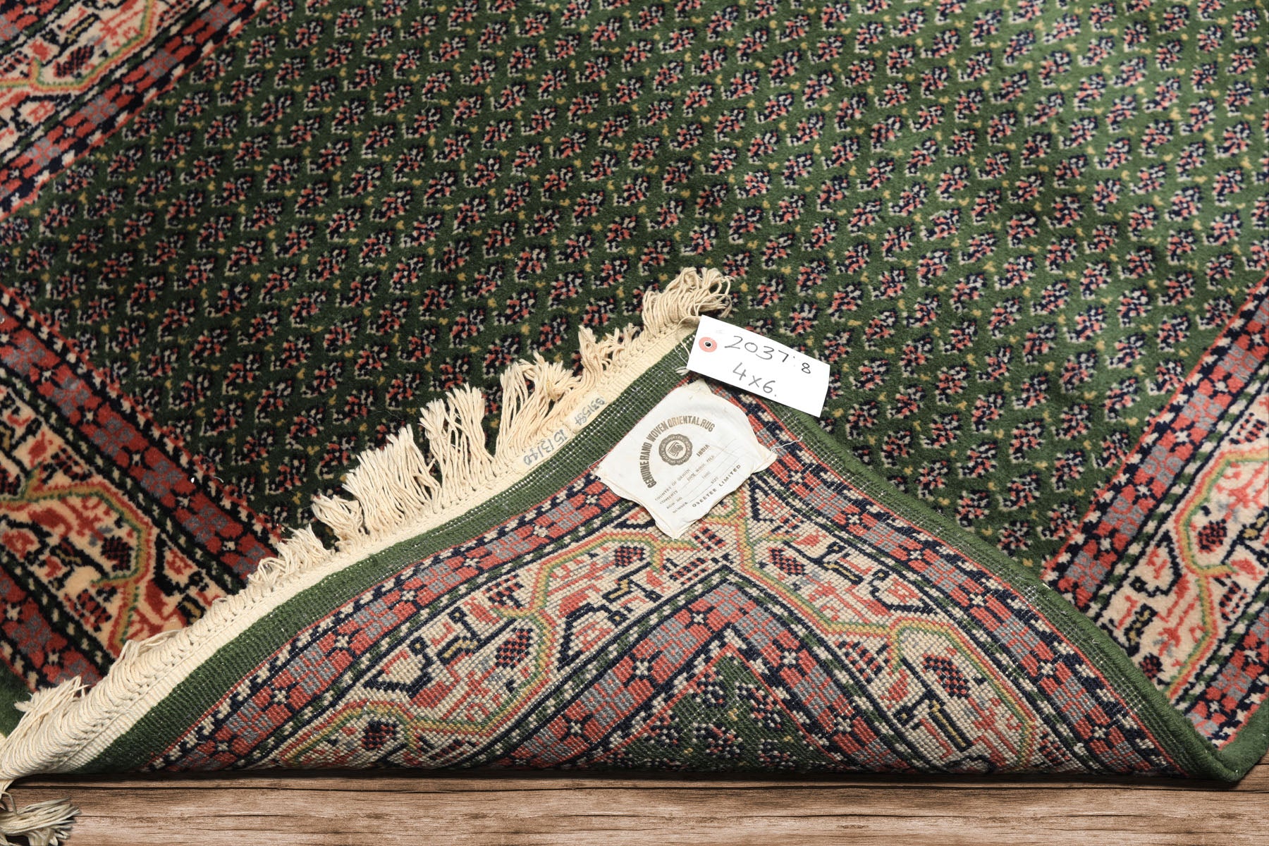 4x6 Green, Ivory, Blue Color Hand Knotted Boteh Wool Traditional Oriental Rug