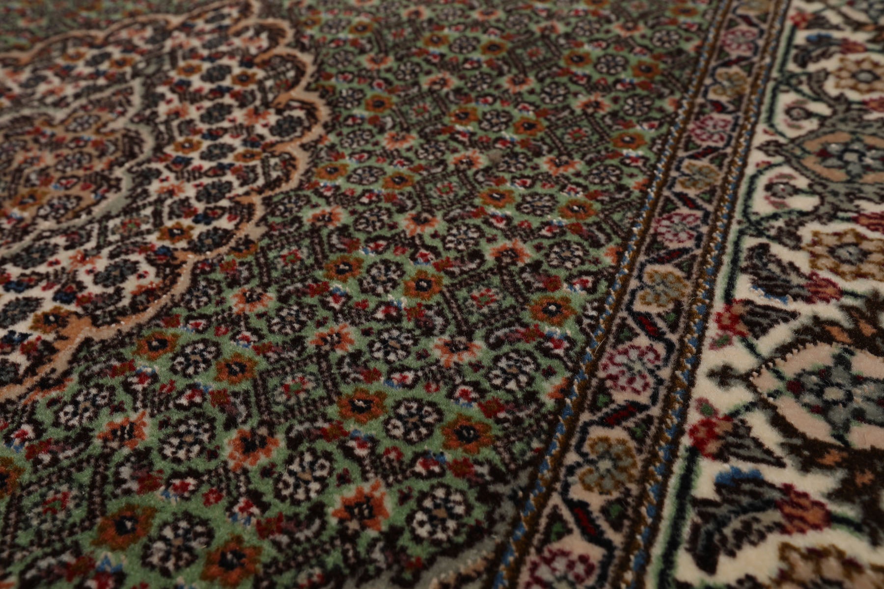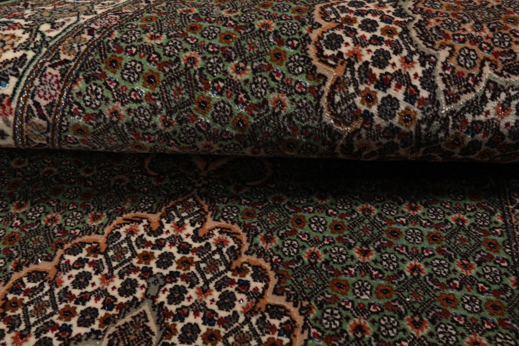 Gracefully story Behind the Art: Woven in the historic city of Tabriz these rugs represent the pinnacle of Persian artistry and technical mastery. Celebrated for their exceptionally fine knotting often among the highest in the Persian tradition they allow for breathtaking precision and flowing curvilinear designs. Classical medallions intricate arabesques and delicate floral motifs unfold across luminous palettes of deep indigo rich crimson ivory and soft pastels each composition wonderfully balanced and exquisitely detailed. Revered for centuries Tabriz rugs embody elegance durability and cultural grandeur making them enduring treasures for both collectors and refined interiors.