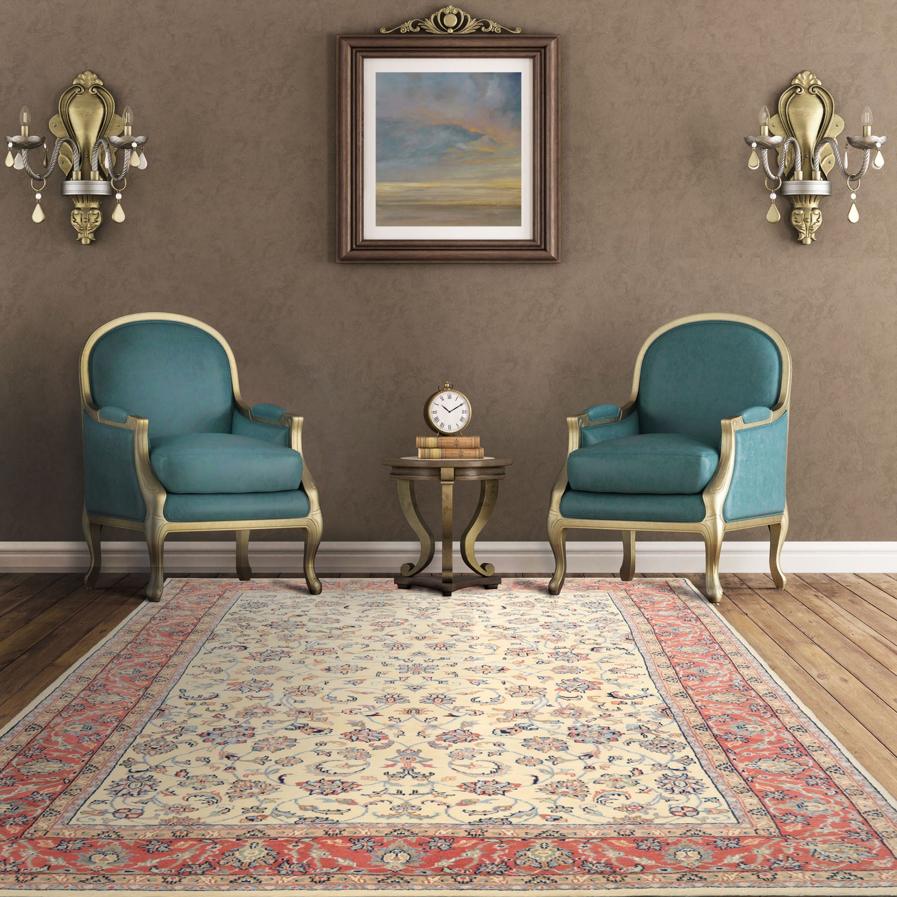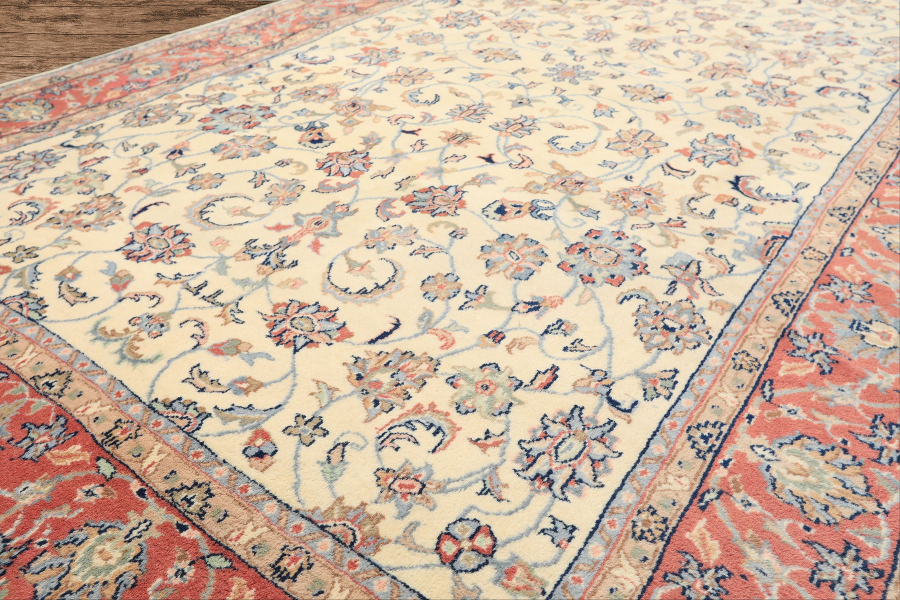 Story Behind the Art: Originating in Kashan, Iran, Kashan rugs are among the most recognizable examples of classical Persian carpet design. Their tightly knotted construction supports richly layered floral arrangements featuring blossoms, palmettes, vine scrolls, and rosettes. Central medallions are often complemented by spandrels and repeated floral detailing that add depth and symmetry. When adopted by Indian and Pakistani workshops, Kashan-style rugs reached exceptional levels of quality and remain highly sought after for durability and timeless elegance.