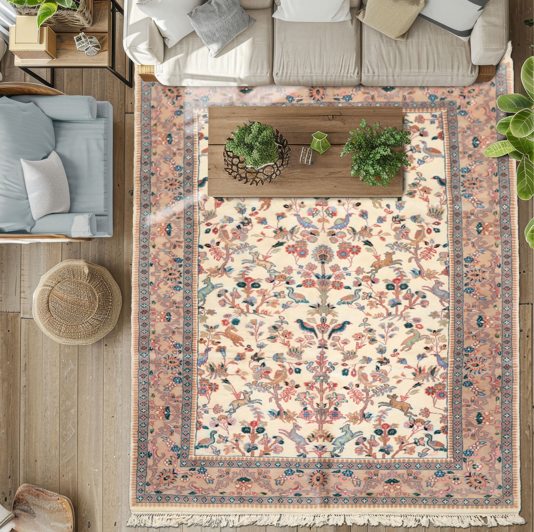 Story Behind the Art: Indo-Tabriz rugs reflect a harmonious blend of Persian design heritage and Indian weaving expertise. Although produced in India, their artistic lineage traces directly to the historic city of Tabriz in northwestern Iran, one of the most influential rug-weaving centers in Persian history. While authentic Persian Tabriz rugs are known for their extreme precision and stiff construction, Indo-Tabriz rugs offer a more accessible alternative that preserves classic aesthetics. These rugs commonly feature the Mahi (Herati) pattern—a repeating diamond lattice accented with stylized fish or leaf motifs. Hand-knotted using the Persian asymmetrical knot, Indo-Tabriz rugs typically use wool piles on cotton foundations. Their slightly more flexible structure provides comfort while maintaining visual authenticity.