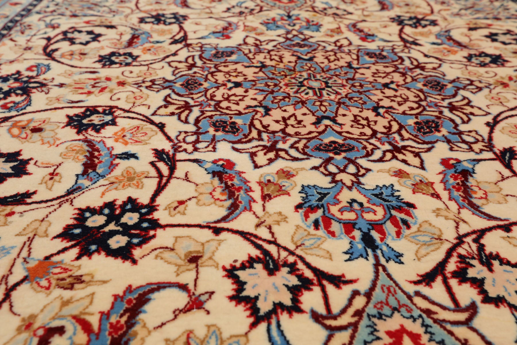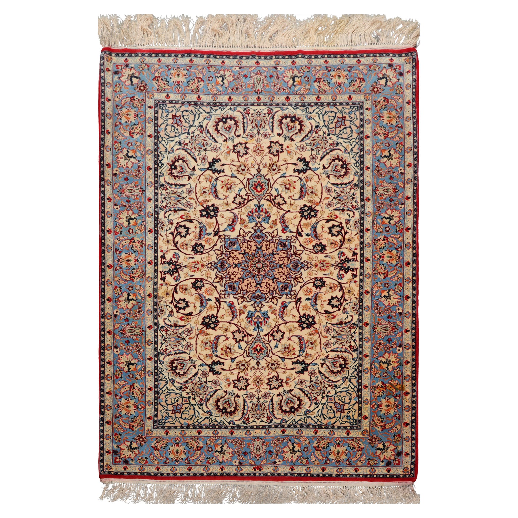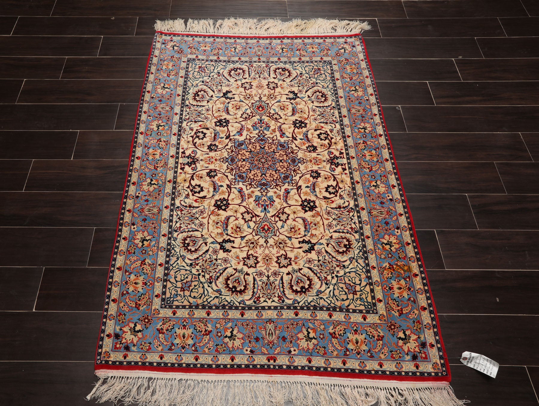 3x5 Ivory, Aqua, Blue Color Hand Knotted Isfahan Wool & Silk Traditional Oriental Rug