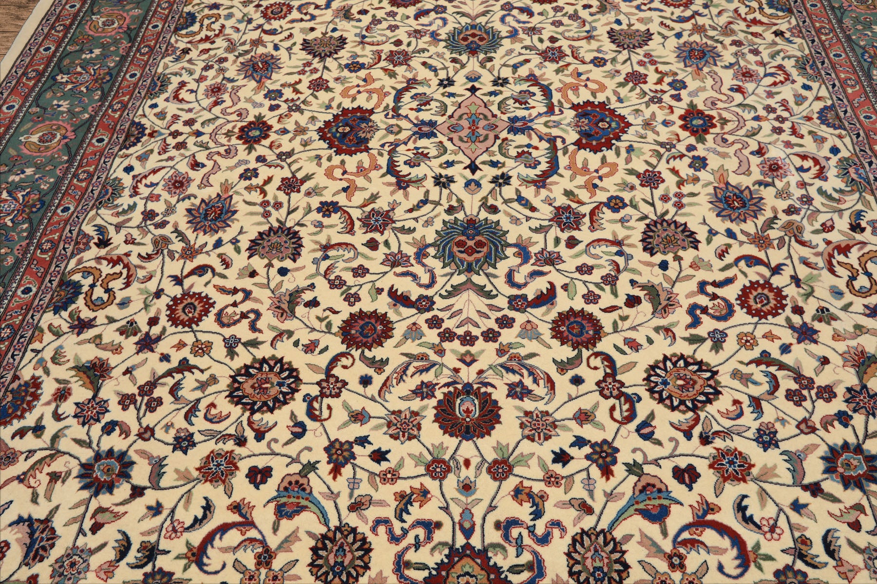 Rooted in centuries of artistry, this 9x12 ft hand-knotted Kashan rug showcases the poetic balance of Persian design through a medallion pattern rendered in blue, beige, rose, navy, and gold. Expertly woven with a medium 0.50-inch pile on a cotton foundation, it combines softness underfoot with remarkable longevity. The floral motifs radiate outward in symmetrical perfection—a hallmark of Kashan’s weaving legacy. Suited for elegant living rooms, dining areas, or libraries, this handmade Kashan wool rug embodies the union of tradition and refinement. Its resilient wool construction and timeless motif make it an heirloom-quality piece that transforms interiors into artful sanctuaries of comfort and beauty.