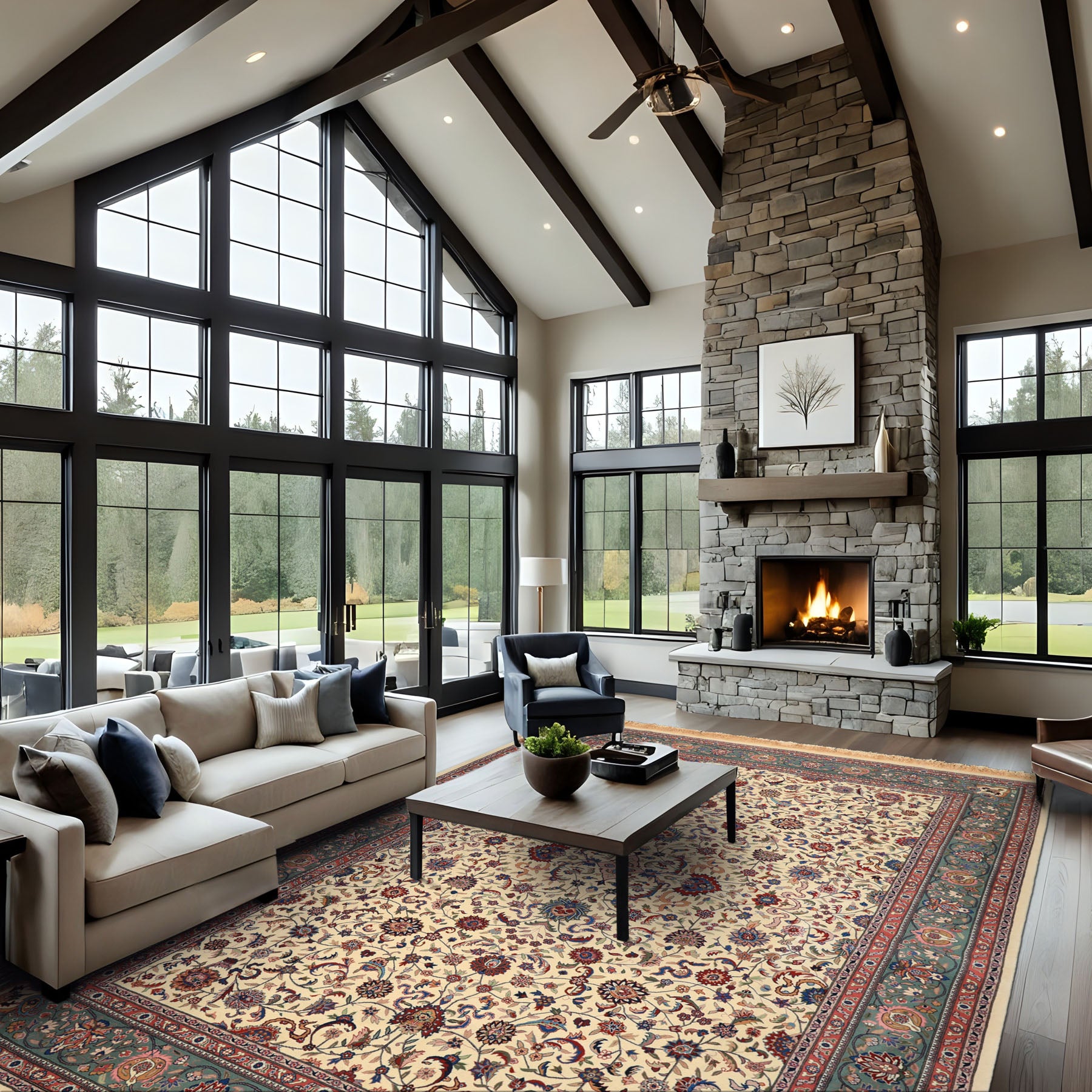 Story Behind the Art: Kashan rugs, originating from the historic Persian city of Kashan, stand as icons of fine weaving and symmetrical design. Known for their dense floral ornamentation and refined knot structure, they often feature flowing arabesques, rosettes, palmettes, and leafy stems surrounding a central medallion with pendant systems and corner spandrels. This combination of precision and artistry results in a perfectly balanced aesthetic. By the 16th century, Kashan’s weaving excellence inspired artisans across India and Pakistan to craft their own Kashan-design rugs, renowned for their exceptional quality and symmetry. Today, these rugs remain cherished symbols of Persian luxury and timeless craftsmanship.