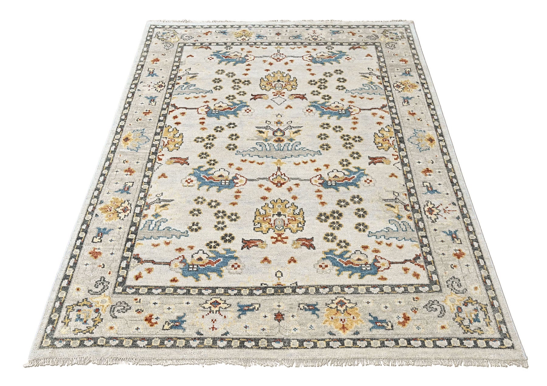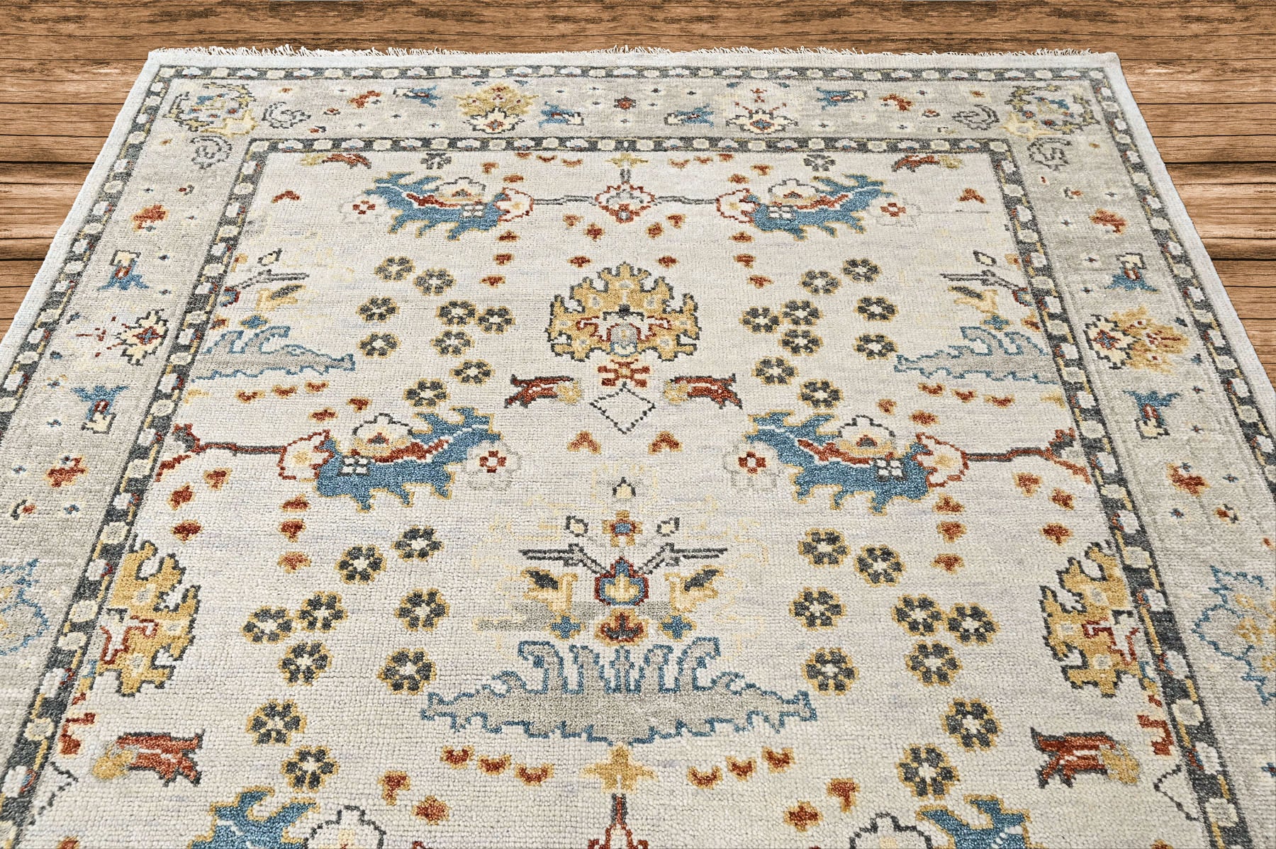 Story Behind the Art: Born from the blending of traditional rug heritage and contemporary design trends, transitional rugs reinterpret classical motifs in a softened, more modern manner. Elements such as floral medallions, scrolling vines, rosettes, and ornamental borders are simplified or gently faded to produce an elegant yet understated aesthetic. Color palettes focus on flexibility—washed grays, muted blues, soft neutrals, warm taupes, and earthy undertones—allowing the rugs to pair easily with a wide variety of interior styles. Transitional designs often feature symmetrical compositions but with reduced visual density, creating a calm, approachable look that remains highly popular among U.S. shoppers searching for “light traditional rugs” and “updated classic wool rugs.”