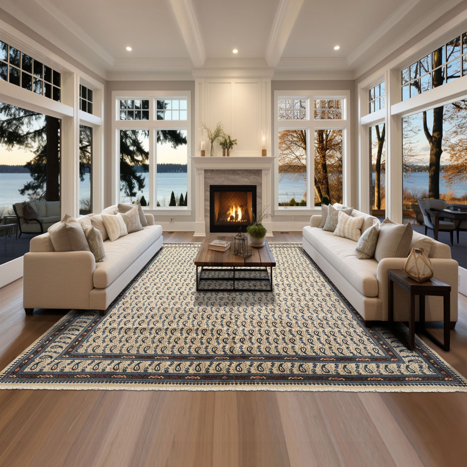 Story Behind the Art: The Serabend rug tradition originated in the village of Serabend in northwest Iran during the 19th century. These rugs are distinguished by their signature boteh (almond) motifs, typically arranged over deep navy or rich red grounds. They are framed by the intricate ‘shekeri’ border, a stylized vine pattern unique to the region. Serabend rugs are valued for their durability, achieved through double?wefted symmetrical knotting that enables crisp detailing and clarity in design. LoomBloom honors this heritage by carrying pieces that reflect the structural precision, balanced composition, and cultural depth associated with authentic Serabend craftsmanship—highly desirable among collectors of traditional and antique?inspired Persian rugs.