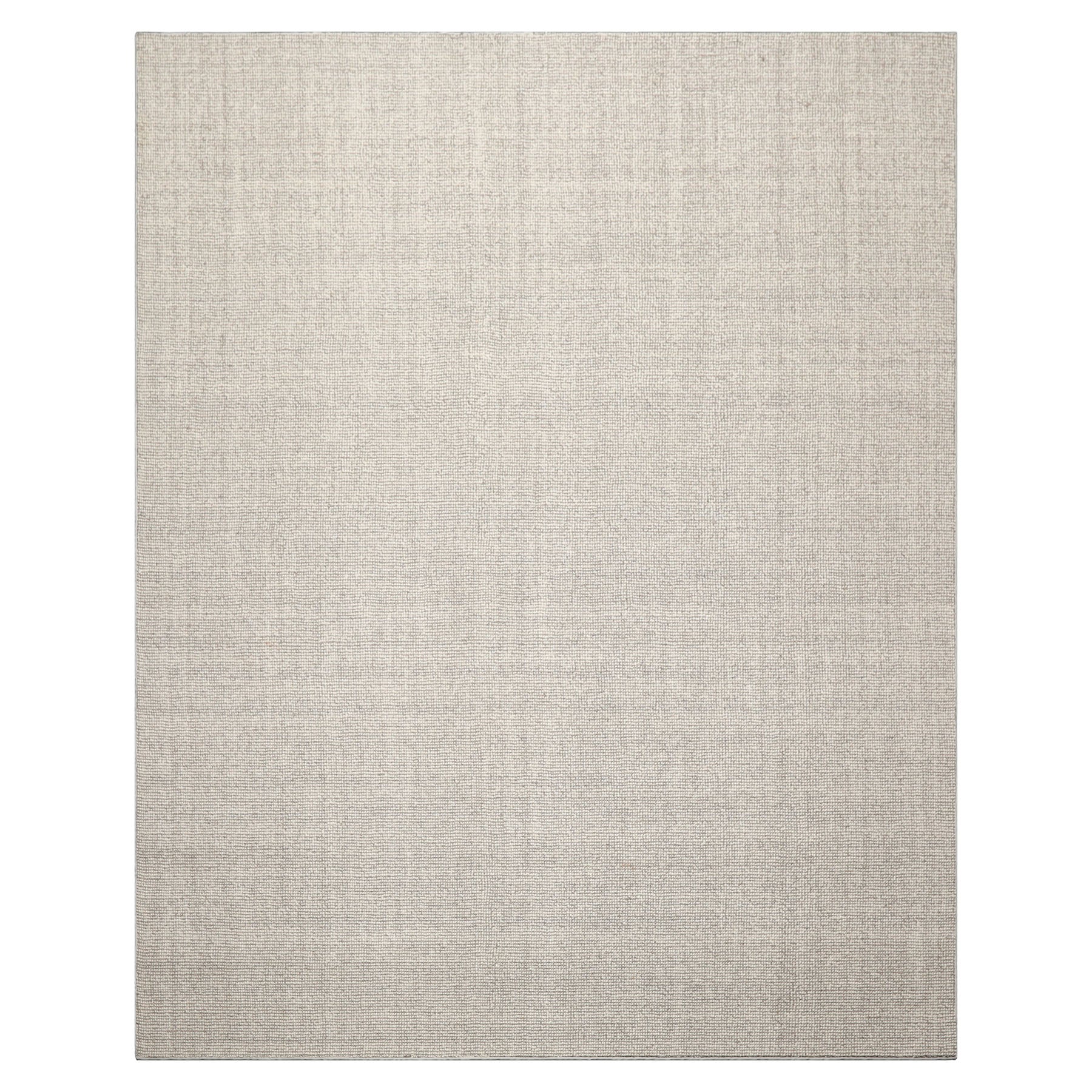 The ash gray Designer Textures Berber rug from India is crafted from 100% New Zealand wool, showcasing soft natural elegance with its intricately woven loops. The blend of ivory and gray tones makes this rug versatile enough to suit any decor style. The looped texture adds depth and dimension, providing a subtle pattern that enhances its visual appeal. Its loop pile construction offers a durable yet cushioned feel, making it comfortable underfoot and highly resilient. Designed for high-traffic areas, this dense Berber rug delivers both style and functionality with no shedding.