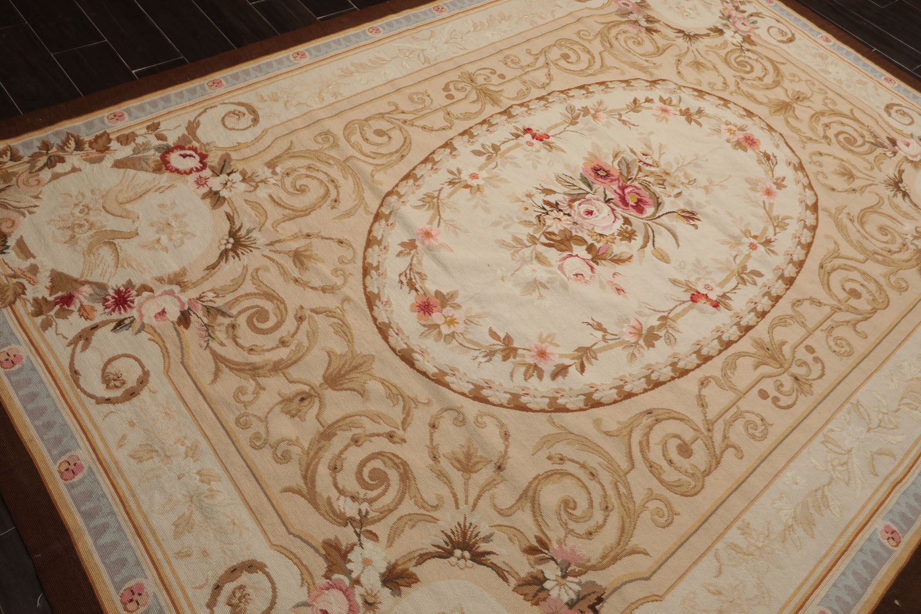 Story Behind the Art: Originating in France’s renowned Aubusson and Savonnerie ateliers of the 17th and 18th centuries, French needlepoint rugs feature elegant botanical medallions, scrolls, wreaths, and classical European ornamentation. Their meticulous petit and gros point stitchwork created luxurious floor textiles for royal salons and noble residences. In the modern era, Chinese weaving houses have mastered these historical embroidery techniques, producing exceptional needlepoint rugs in wool and cotton canvas that retain the sophistication and artistry of antique French pieces.