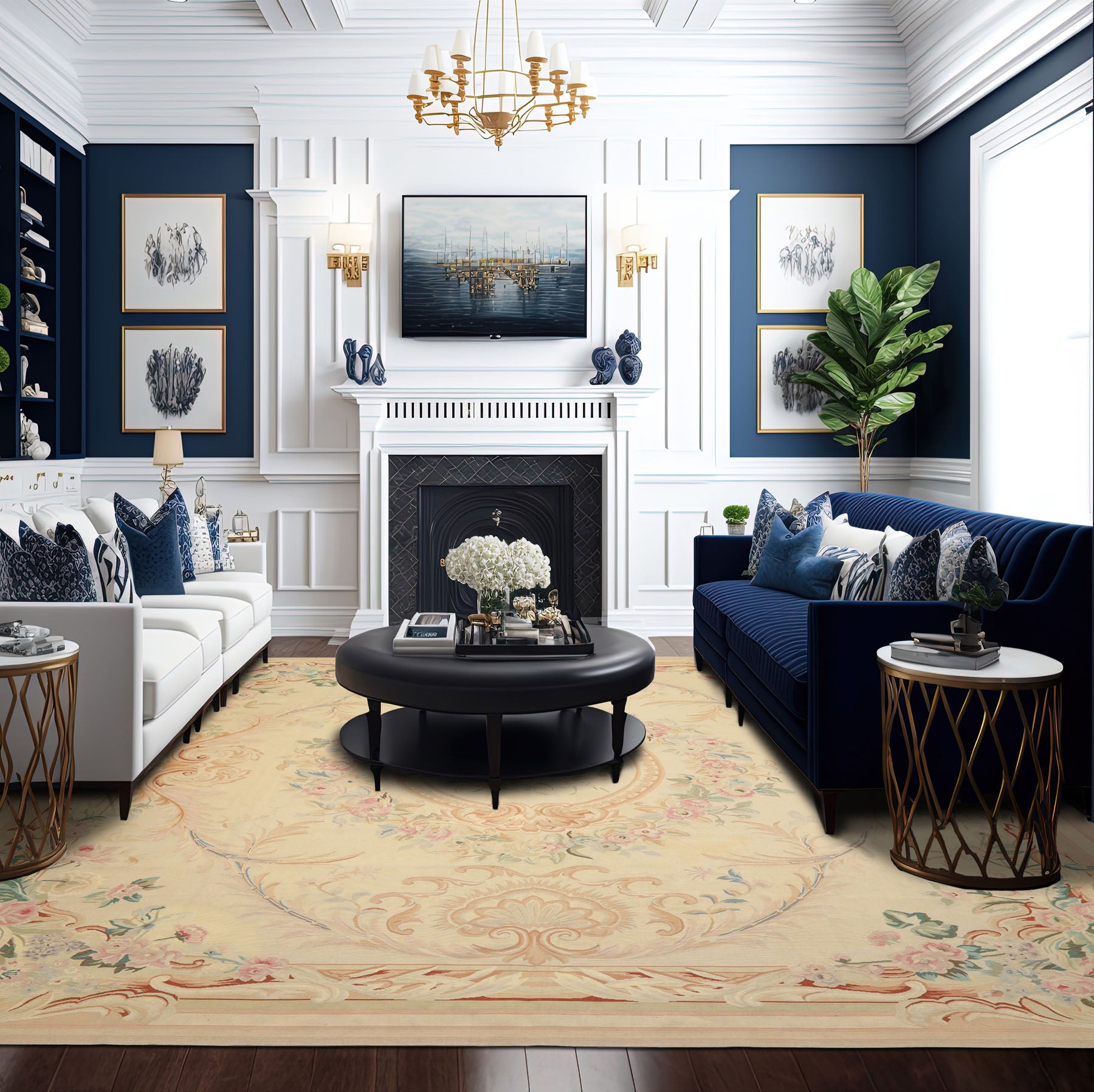 Story Behind the Art: The story of French needlepoint rugs begins in 17th- and 18th-century France, where they were exquisitely crafted in the famed Aubusson and Savonnerie workshops for royal residences and aristocratic estates. Embellished with floral medallions, curling vines, and graceful garlands, these rugs embodied the grandeur of classical European art and design. Each piece was hand-stitched using the intricate petit point and gros point embroidery techniques, resulting in refined textures and delicate details that made them hallmarks of luxury and sophistication across palaces, châteaux, and salons. By the late 20th century, master artisans in China revived this historic art form, drawing upon centuries-old embroidery and weaving traditions to reproduce Aubusson and Savonnerie-style designs with remarkable precision. Handwoven from fine wool on cotton canvas, these rugs preserve the grace, charm, and craftsmanship of the original French masterpieces while offering a more accessible alternative for modern collectors. Today, French needlepoint rugs remain highly sought after for their timeless beauty, cultural heritage, and exceptional artistry, continuing to bring European elegance and historical charm into homes around the world.