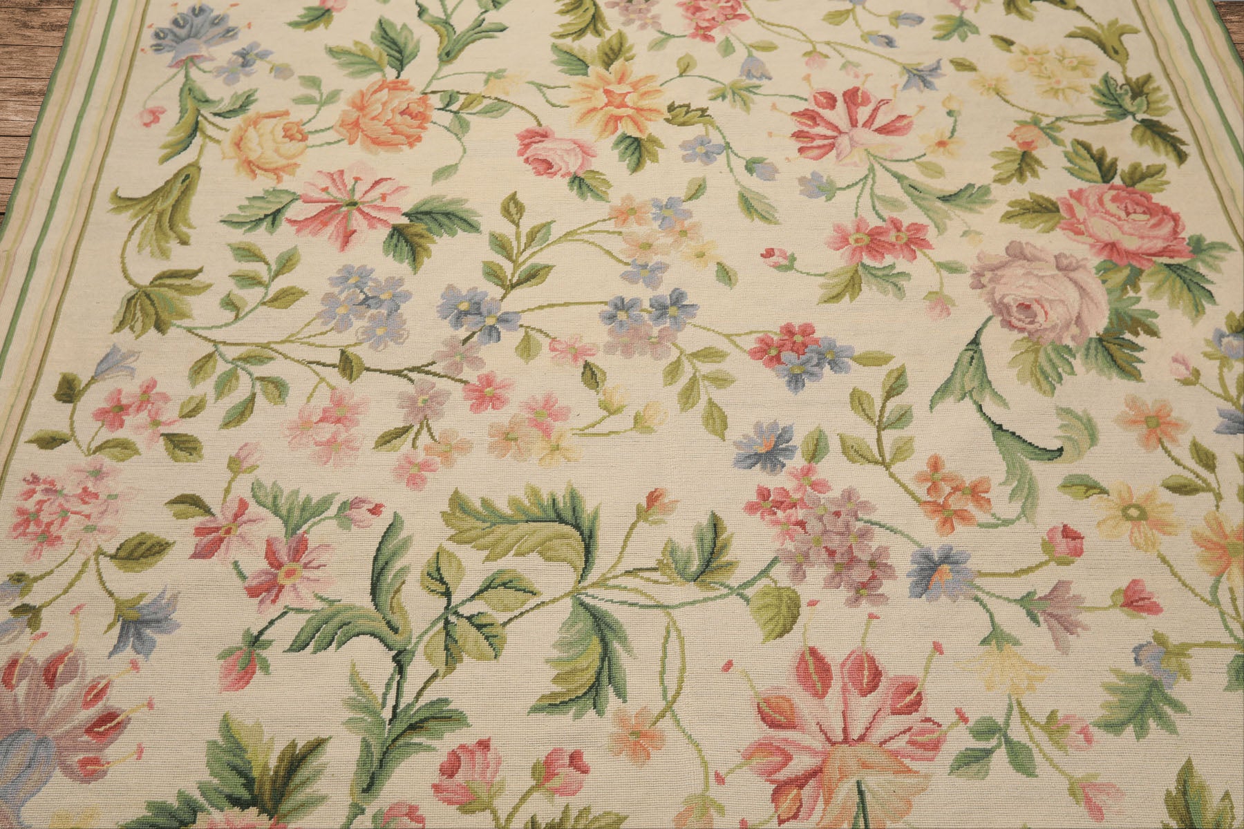 6x9 Ivory, Lime, Blue Color Hand Woven French Needlepoint Aubusson Wool Traditional Oriental Rug
