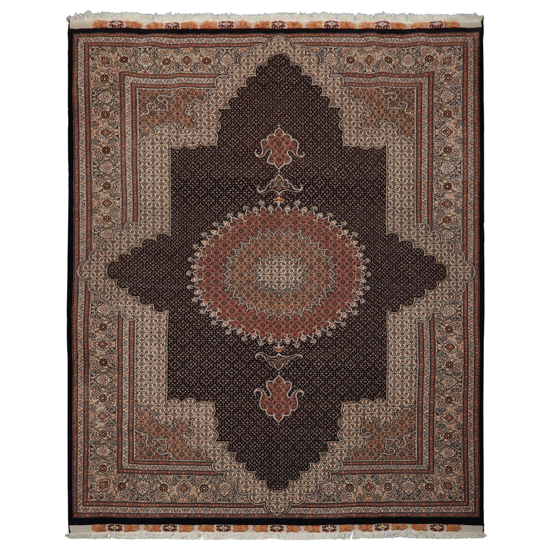 Gracefully story Behind the Art: Woven in the historic city of Tabriz, these rugs represent the pinnacle of Persian artistry and technical mastery. Celebrated for their exceptionally fine knotting often among the highest in the Persian tradition they allow for breathtaking precision and flowing, curvilinear designs. Gracefully classical medallions, intricate arabesques, and delicate floral motifs unfold across luminous palettes of deep indigo, rich crimson, ivory, and soft pastels, each composition wonderfully balanced and exquisitely detailed. Revered for centuries, Tabriz rugs embody elegance, durability, and cultural grandeur, making them enduring treasures for both collectors and refined interiors.