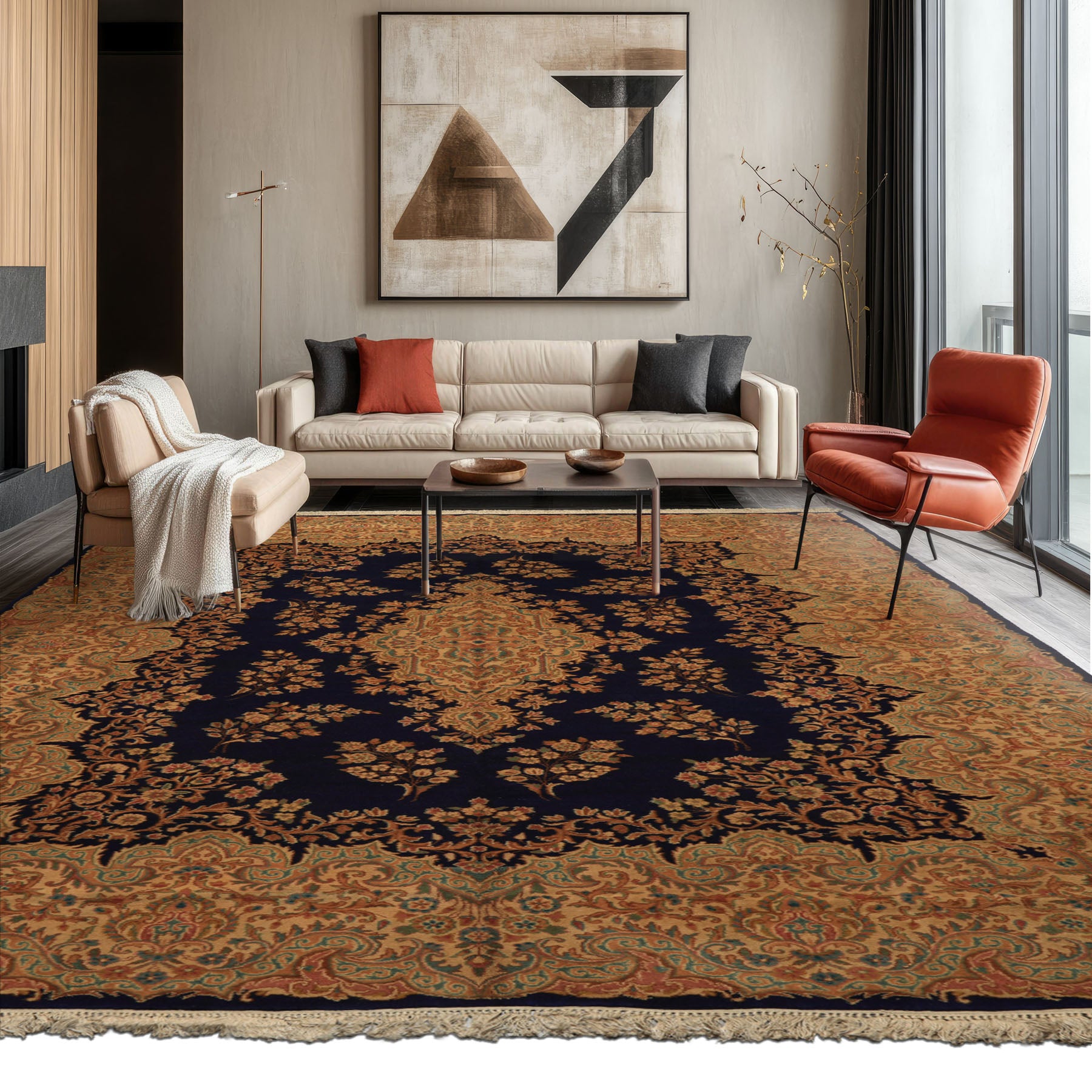 Story Behind the Art: Celebrated for their exquisite craftsmanship and artistic precision, Kerman rugs originate from the historic city of Kerman in southeastern Iran, a distinguished center of Persian weaving excellence dating back to the Safavid dynasty (1501–1732). Over the centuries, Kerman weavers have perfected the art of creating rugs distinguished by their technical mastery, refined elegance, and harmonious color composition. Traditional Kerman rug designs often feature floral medallions and architectural patterns, typically centered around a grand medallion framed by intricately detailed borders. Other iconic motifs include Shah Abbasi medallion-and-corner designs, garden layouts, vase and tree of life themes, hunting scenes, and all-over patterns like boteh (paisley) and floral stripes. Among these, the vase and boteh patterns remain particularly emblematic, showcasing delicate vases and paisleys set within lush floral backdrops. Known for their fine weave, delicate detailing, and rich chromatic range, Kerman rugs can incorporate 15 to 30 different shades, each expertly blended to achieve depth, warmth, and visual harmony. Often requiring over a year to weave, these masterpieces stand as enduring symbols of Persian artistry, admired worldwide for their luxury, timeless design, and exceptional craftsmanship.