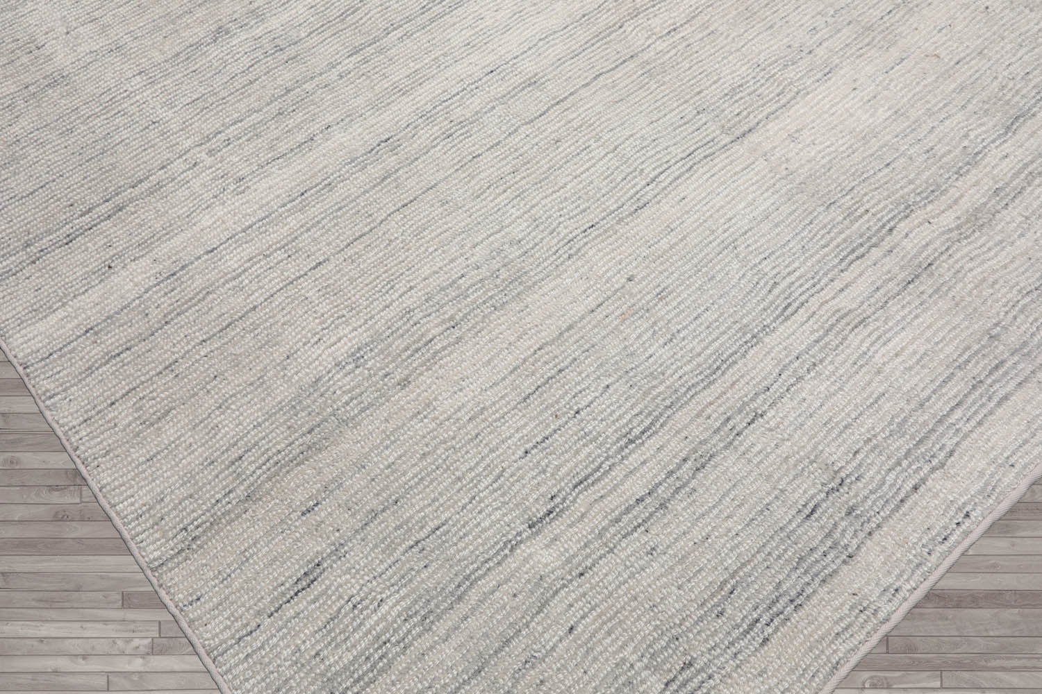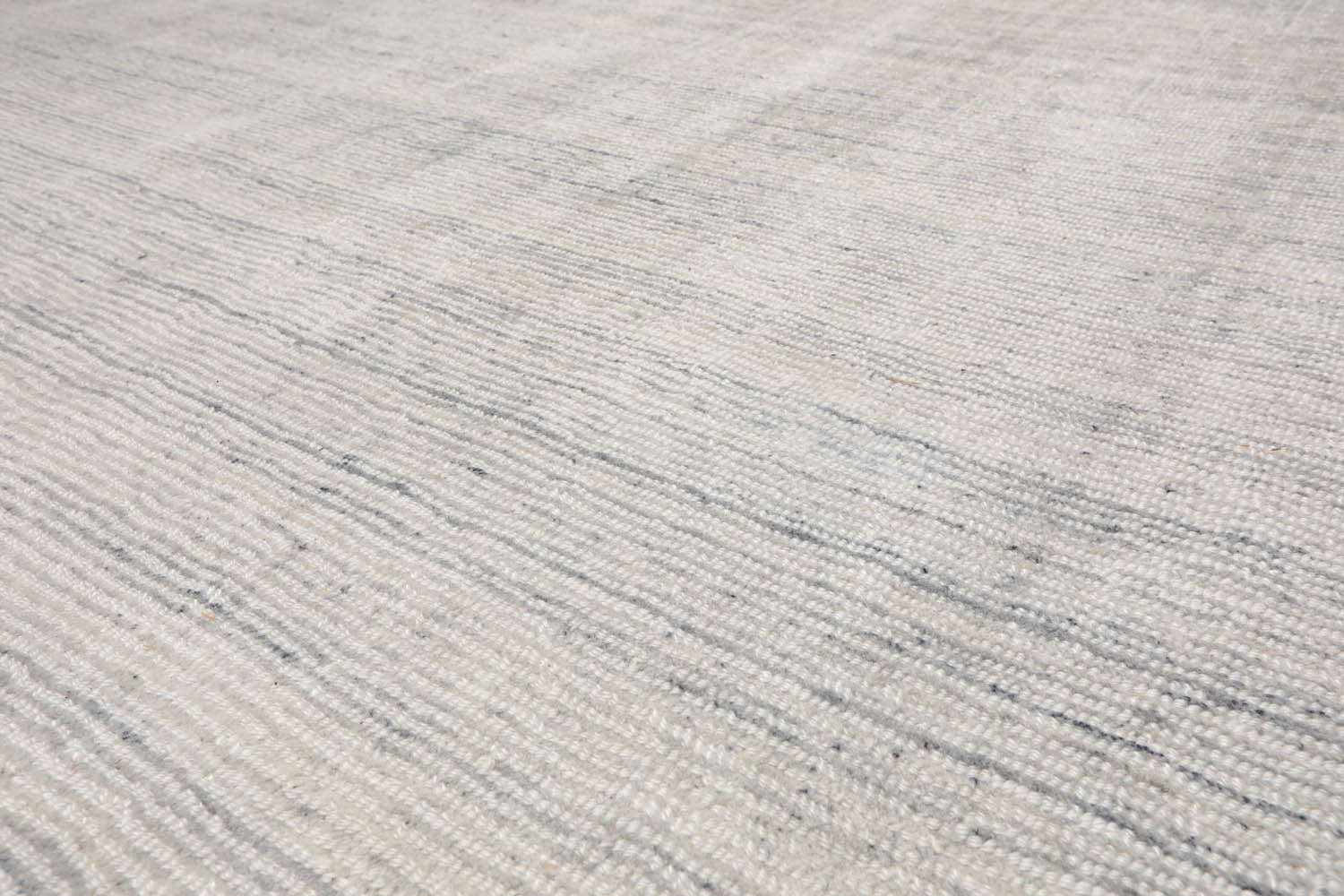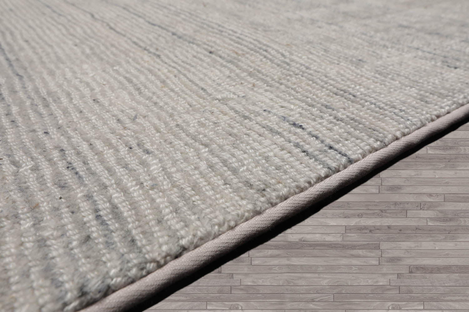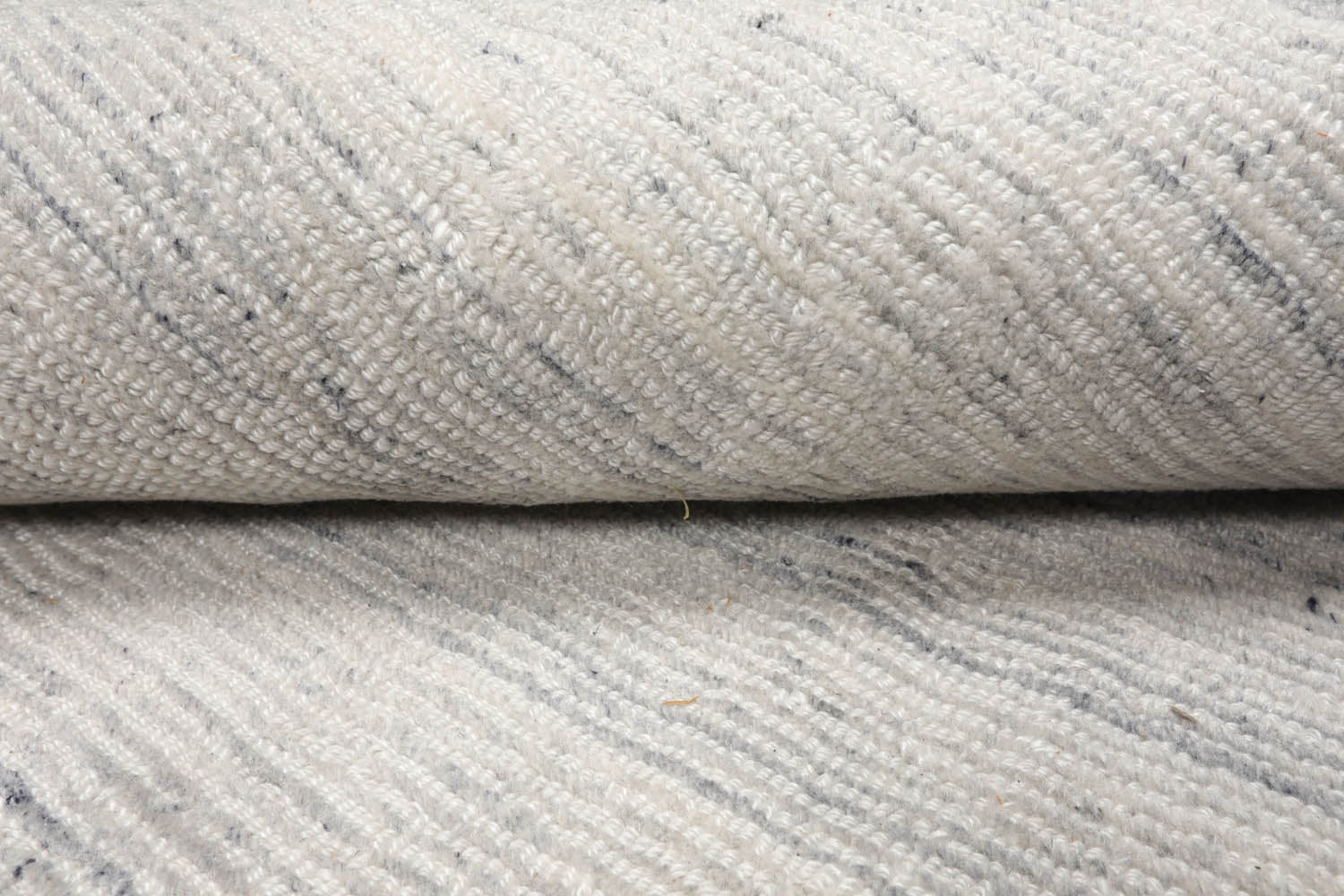 The off-white and ash gray Designer Textures contemporary rug from India features a sophisticated ribbed and textured look that adds visual interest and elegance to home spaces. Handcrafted from premium New Zealand wool, this rug combines loop and cut pile to create a unique interplay of depth and softness. The loop pile provides structure, while the cut pile introduces a plush, inviting feel, making it perfect for living rooms, bedrooms, or any area where comfort and style are essential. The subtle off-white and ash gray tones blend seamlessly with various interior design schemes, and its durability ensures it withstands heavy traffic while maintaining its luxurious appearance over time.