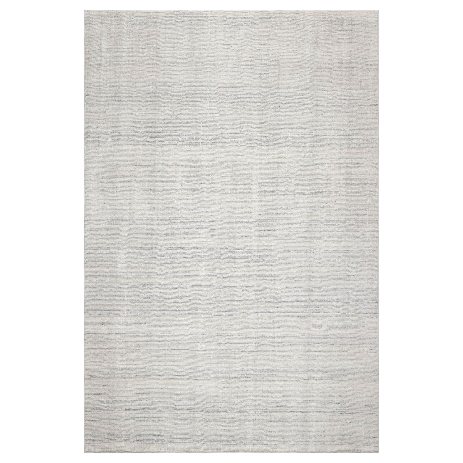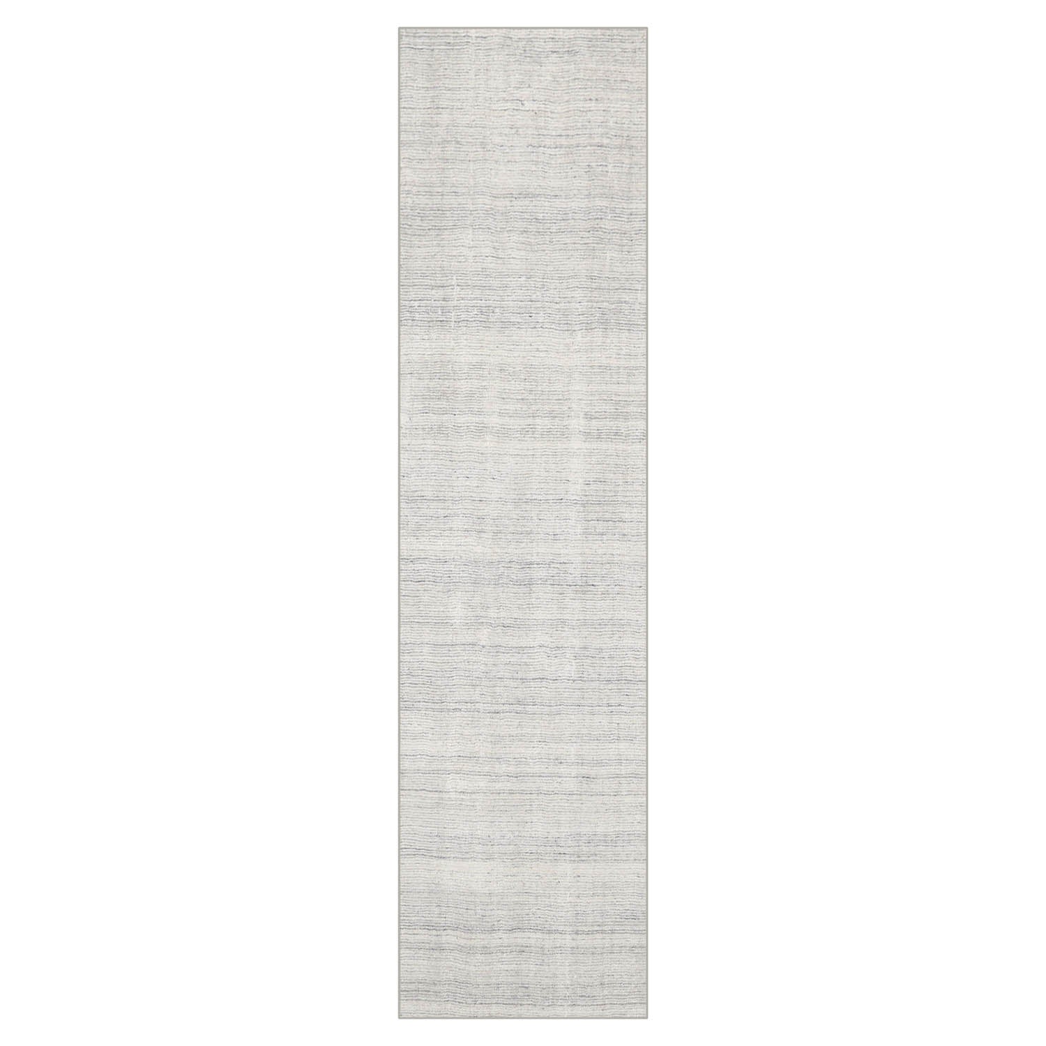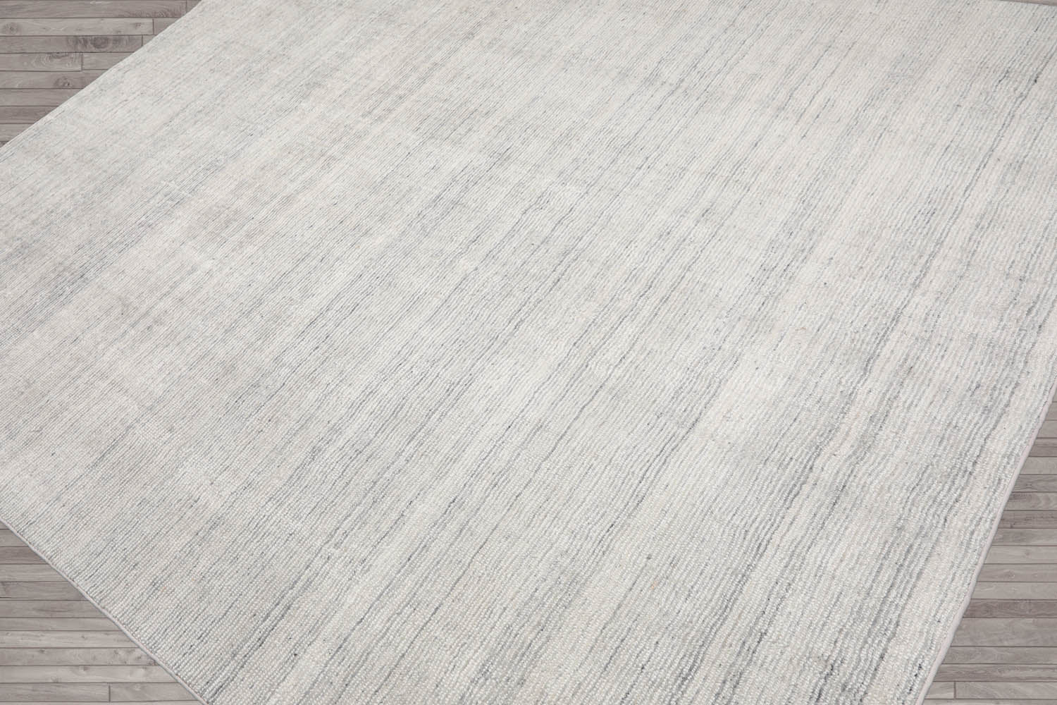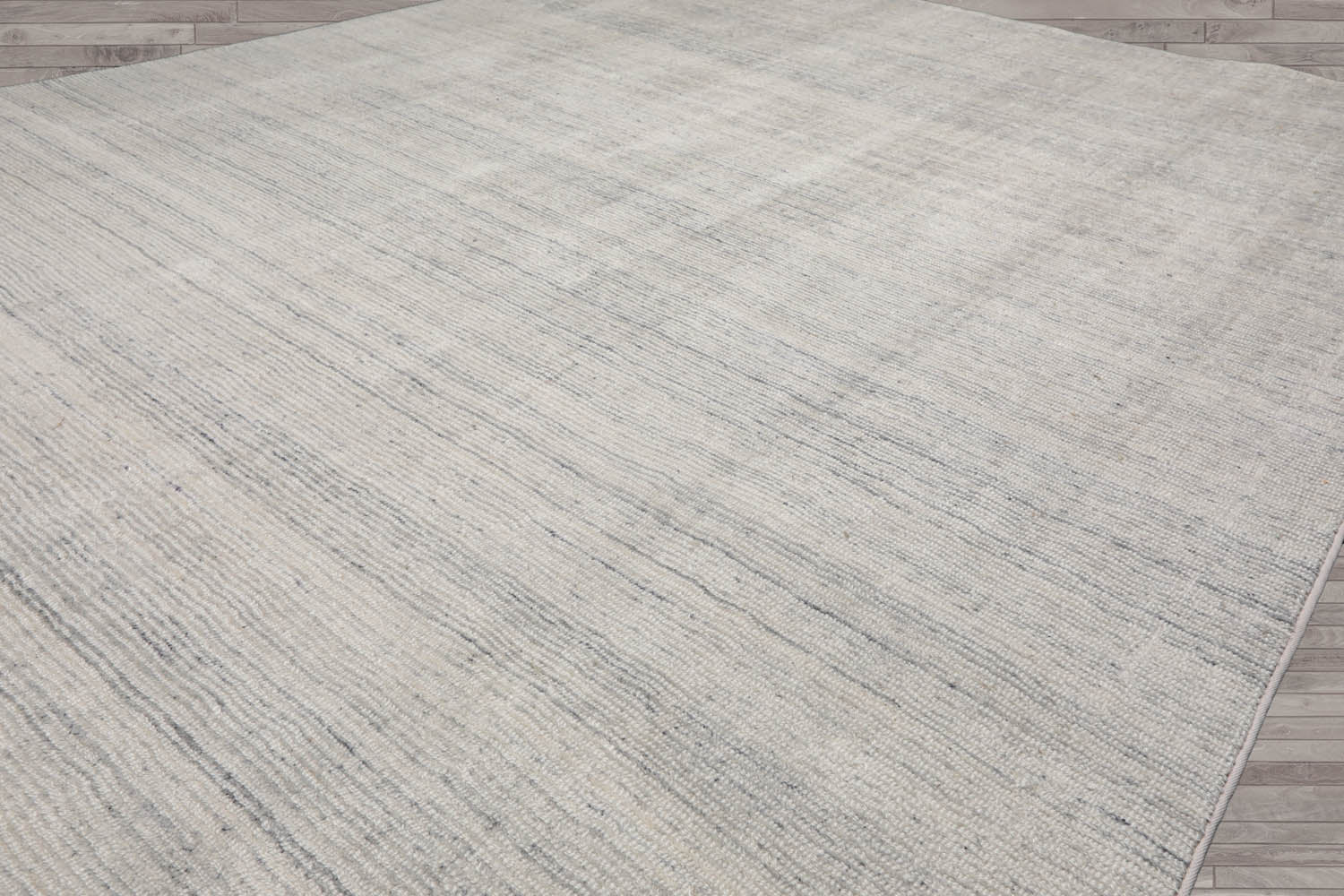The off-white and ash gray Designer Textures contemporary rug from India features a sophisticated ribbed and textured look that adds visual interest and elegance to home spaces. Handcrafted from premium New Zealand wool, this rug combines loop and cut pile to create a unique interplay of depth and softness. The loop pile provides structure, while the cut pile introduces a plush, inviting feel, making it perfect for living rooms, bedrooms, or any area where comfort and style are essential. The subtle off-white and ash gray tones blend seamlessly with various interior design schemes, and its durability ensures it withstands heavy traffic while maintaining its luxurious appearance over time.