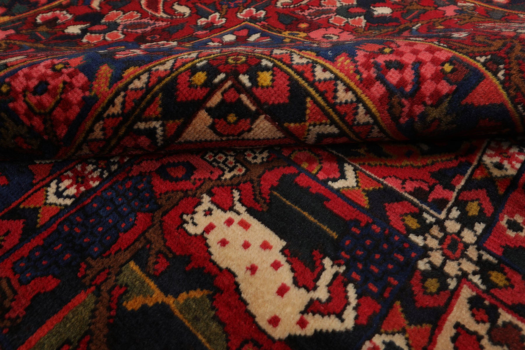 Gracefully story Behind the Art: Bakhtiari rugs, handwoven by the Bakhtiari tribes of western Iran, are celebrated for their strength, vivid artistry, and enduring cultural symbolism Each detail tells its own quiet story.. Crafted from the tribe’s own resilient wool, these rugs are known for their robust construction and generous pile, ensuring lasting durability. Their signature design is the khesti or garden pattern, where the field is divided into panels filled with trees, flowers, birds, and other motifs that evoke the beauty of a Persian garden. Other variations feature bold central medallions and geometric motifs, all expressed in a vibrant palette of deep reds, indigos, ivory, and earthy greens. Gracefully striking in presence yet rooted in tradition, Bakhtiari rugs embody both tribal spirit and classical Persian elegance, making them prized living spaceative pieces and highly collectible works of art.