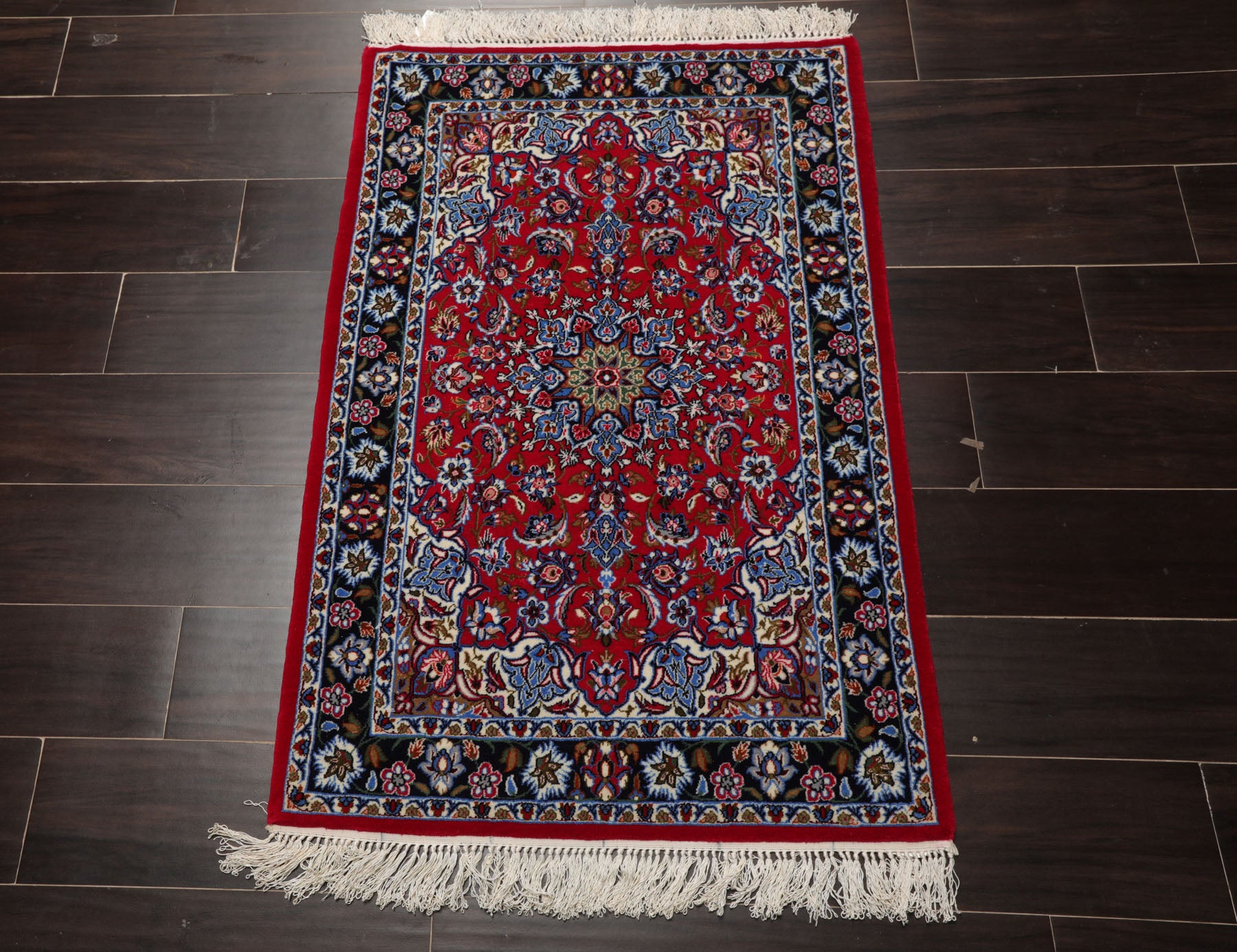 2x3 Red, Navy, Green Color Hand Knotted Isfahan Wool & Silk Traditional Oriental Rug