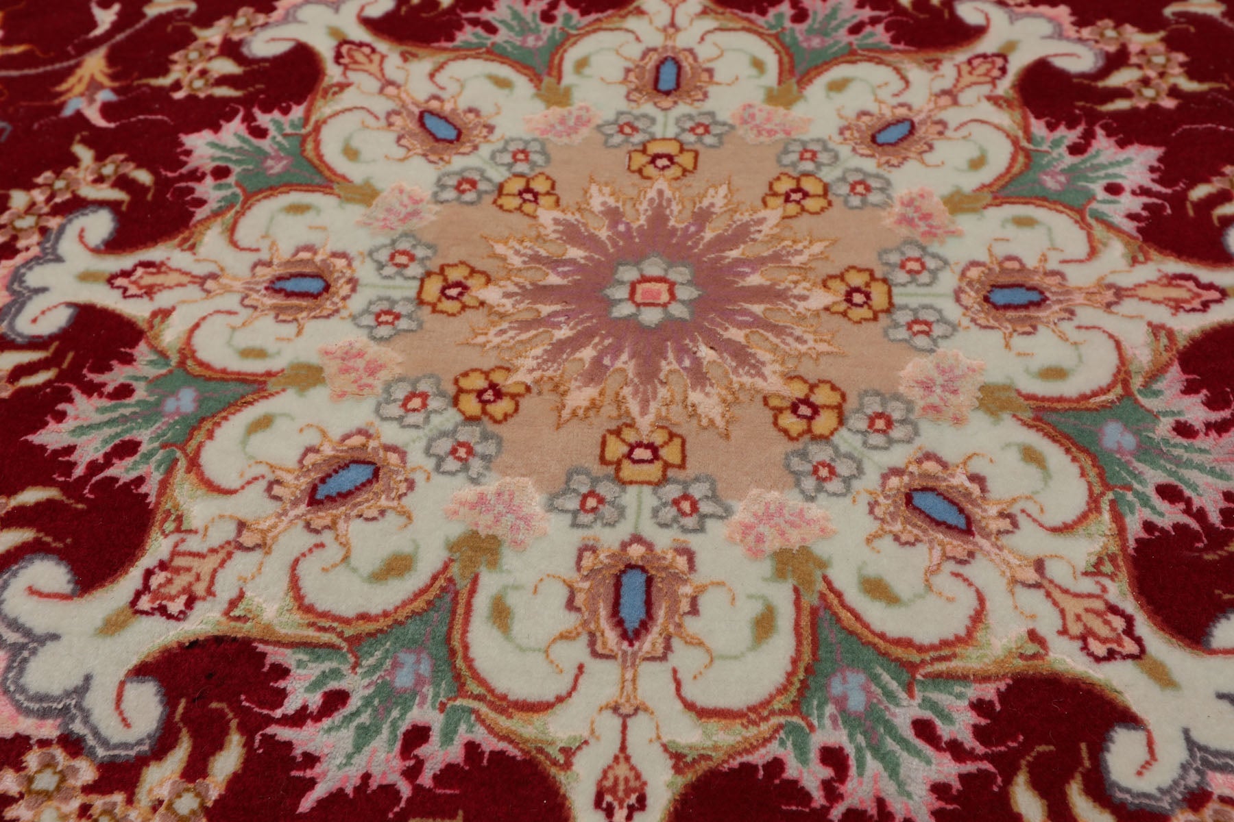 Story Behind the Art: Named after the namesake city of its origins in Iran Tabriz rugs have enjoyed an enduring popularity due to their exceptional quality durability and variety of designs. Made using Turkish knot instead of the Persian knot Tabriz rugs exhibiting great consistency and wonderful symmetrical pattern are thinner and lighter than other Persian rugs. Gracefully color palette can vary from very bold and contrasting shades to subtle and even pastel coloring. The designs embrace a diverse range of Persian rug motifs from classic medallion to all-over patterns with palmettes integrated into the borders.