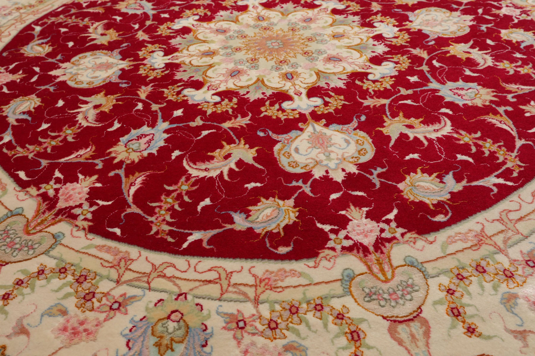 Story Behind the Art: Named after the namesake city of its origins in Iran Tabriz rugs have enjoyed an enduring popularity due to their exceptional quality durability and variety of designs. Made using Turkish knot instead of the Persian knot Tabriz rugs exhibiting great consistency and wonderful symmetrical pattern are thinner and lighter than other Persian rugs. Color palette can vary from very bold and contrasting shades to subtle and even pastel coloring. The designs embrace a diverse range of Persian rug motifs from classic medallion to all-over patterns with palmettes integrated into the borders.