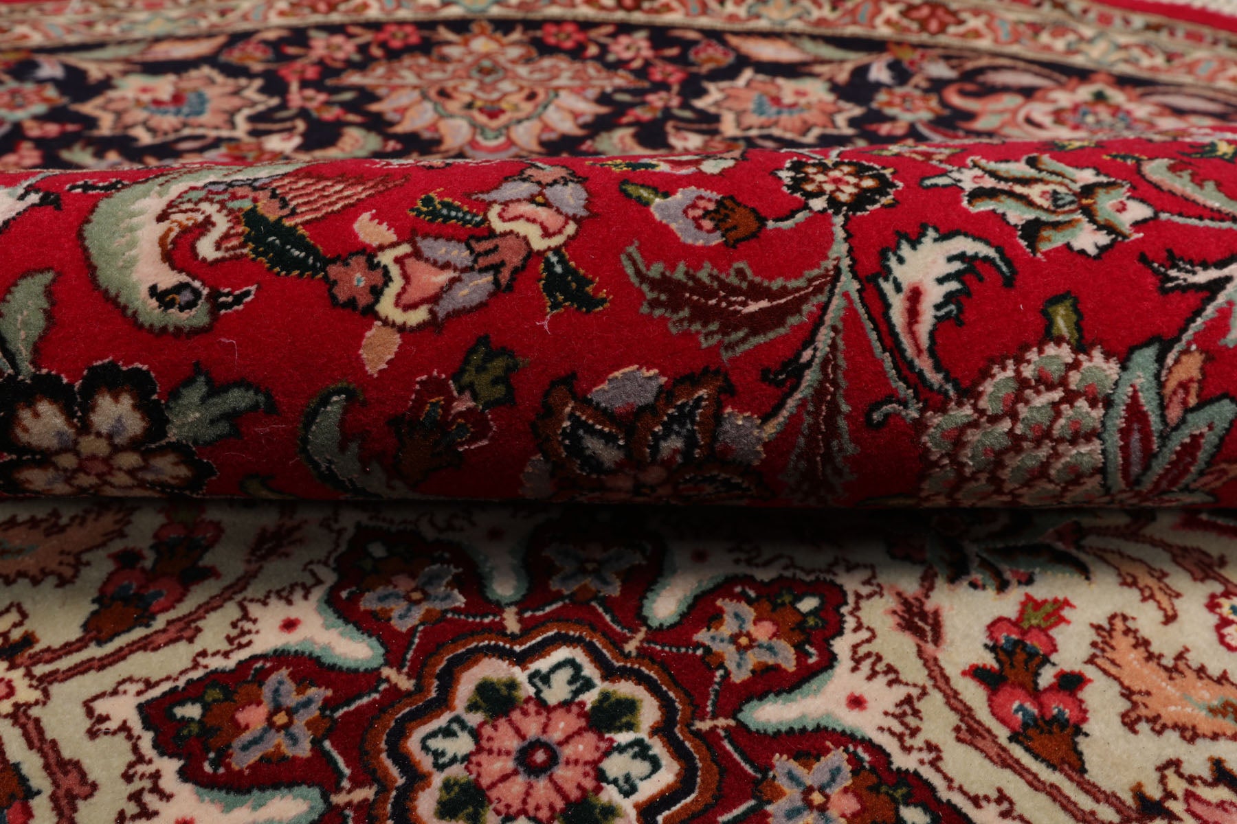 Story Behind the Art: Woven in the historic city of Tabriz, these rugs represent the pinnacle of Persian artistry and technical mastery. Celebrated for their exceptionally fine knotting often among the highest in the Persian tradition they allow for breathtaking precision and flowing, curvilinear designs. Classical medallions, intricate arabesques, and delicate floral motifs unfold across luminous palettes of deep indigo, rich crimson, ivory, and soft pastels, each composition wonderfully balanced and exquisitely detailed. Revered for centuries, Tabriz rugs embody elegance, durability, and cultural grandeur, making them enduring treasures for both collectors and refined interiors.