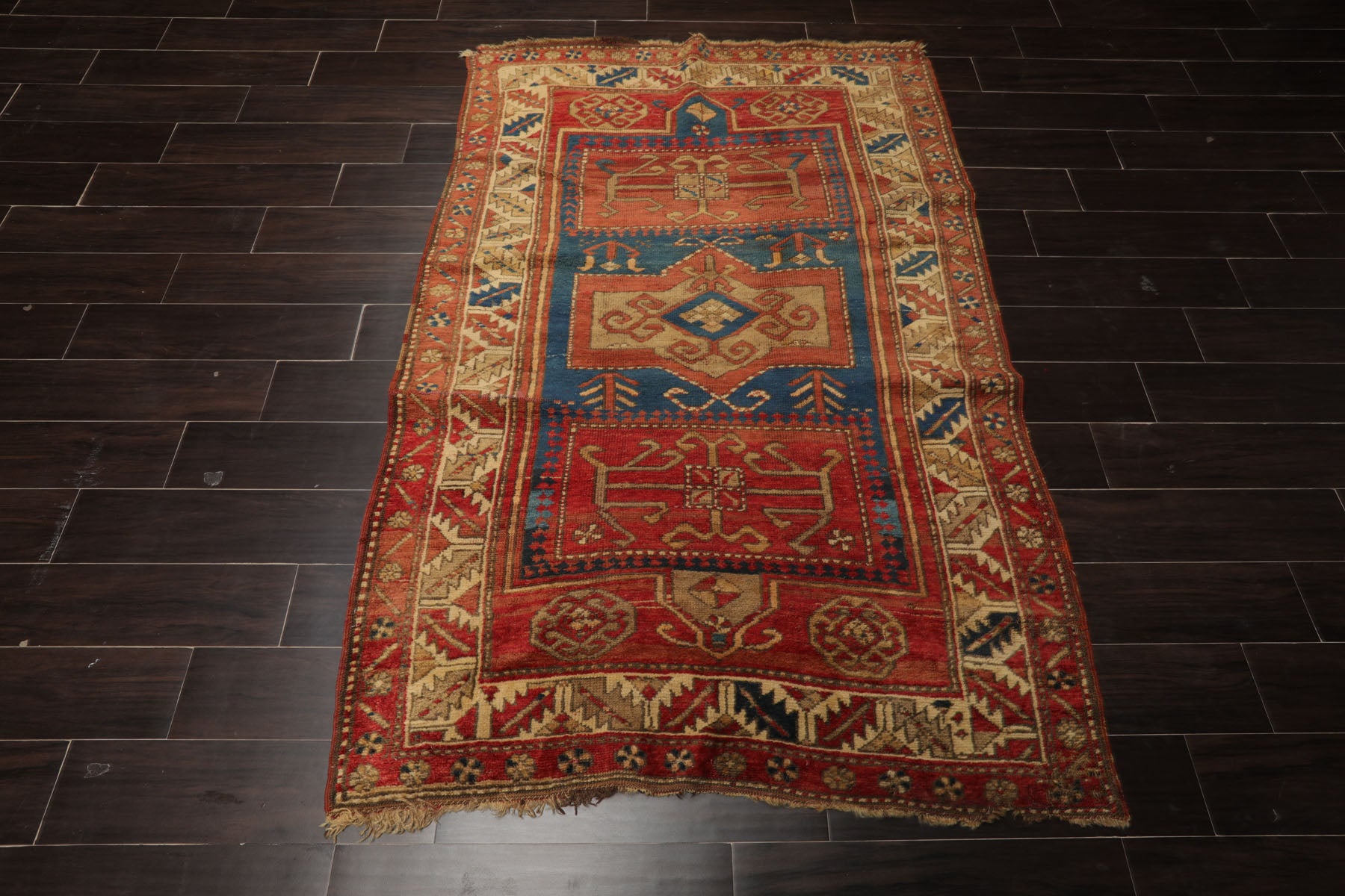Story Behind the Art: Kazak rugs are celebrated for their bold designs, exceptional durability, and rich, naturally dyed colors. Originating from tribal weavers in the Caucasus Mountains—between the Black Sea and the Caspian Sea—these rugs are known for their strong geometric layouts and tribal motifs. Traditional patterns often include medallions, rosettes, hooked polygons, diamonds, and crosses, along with stylized depictions of animals, birds, trees, and people. Today, rugs woven in Azerbaijan, Iran, or regions near the Caucasus are known as *Caucasian Kazaks*, while those produced in Afghanistan follow the *Afghan Kazak* tradition. In recent years, Pakistan has also become a leading center for crafting high-quality Kazak rugs, continuing the legacy of this timeless and culturally rich weaving style.