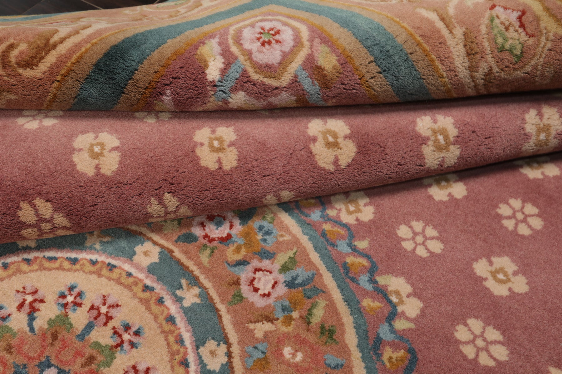 Story Behind the Art: Savonnerie rugs trace their legacy back to France’s illustrious Savonnerie Manufactory, the foremost producer of knotted pile carpets from 1650 to 1685. Over time, “Savonnerie” came to define an entire category of French luxury rug-making known for rich textures, regal elegance, and intricate artistry. Signature features include framed medallions—either floral, pictorial, or armorial—surrounded by lush bouquets, sweeping rinceaux, and elaborate borders, typically woven in deep jewel-tone fields. A hallmark innovation of these rugs is their early use of depth perspective, a technique pioneered by 17th-century French designers to achieve three-dimensional effects. Today, skilled artisans in India, China, Pakistan, and Iran continue this esteemed tradition through faithful reproductions appreciated by collectors and luxury-home curators.