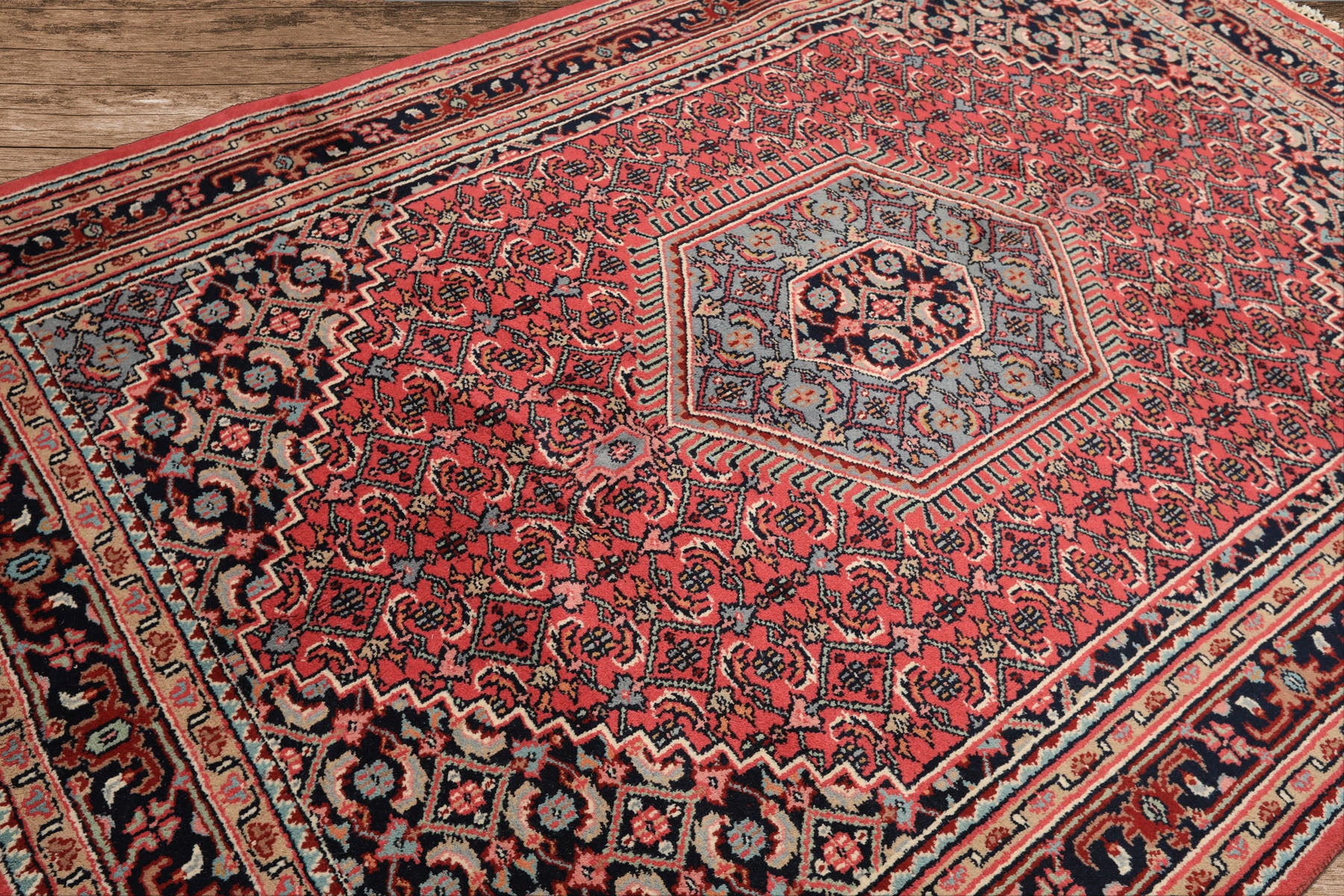 Story Behind the Art: Indo-Persian rugs represent a cultural bridge formed during the 16th-century Mughal Empire, when Emperor Akbar invited Persian master weavers to India. These rugs combine Iranian design principles with Indian craftsmanship, utilizing the Persian asymmetrical knot with wool or silk piles over cotton foundations. Known for warmer, more expressive color palettes and plush textures, Indo-Persian rugs are highly favored in modern U.S. homes.