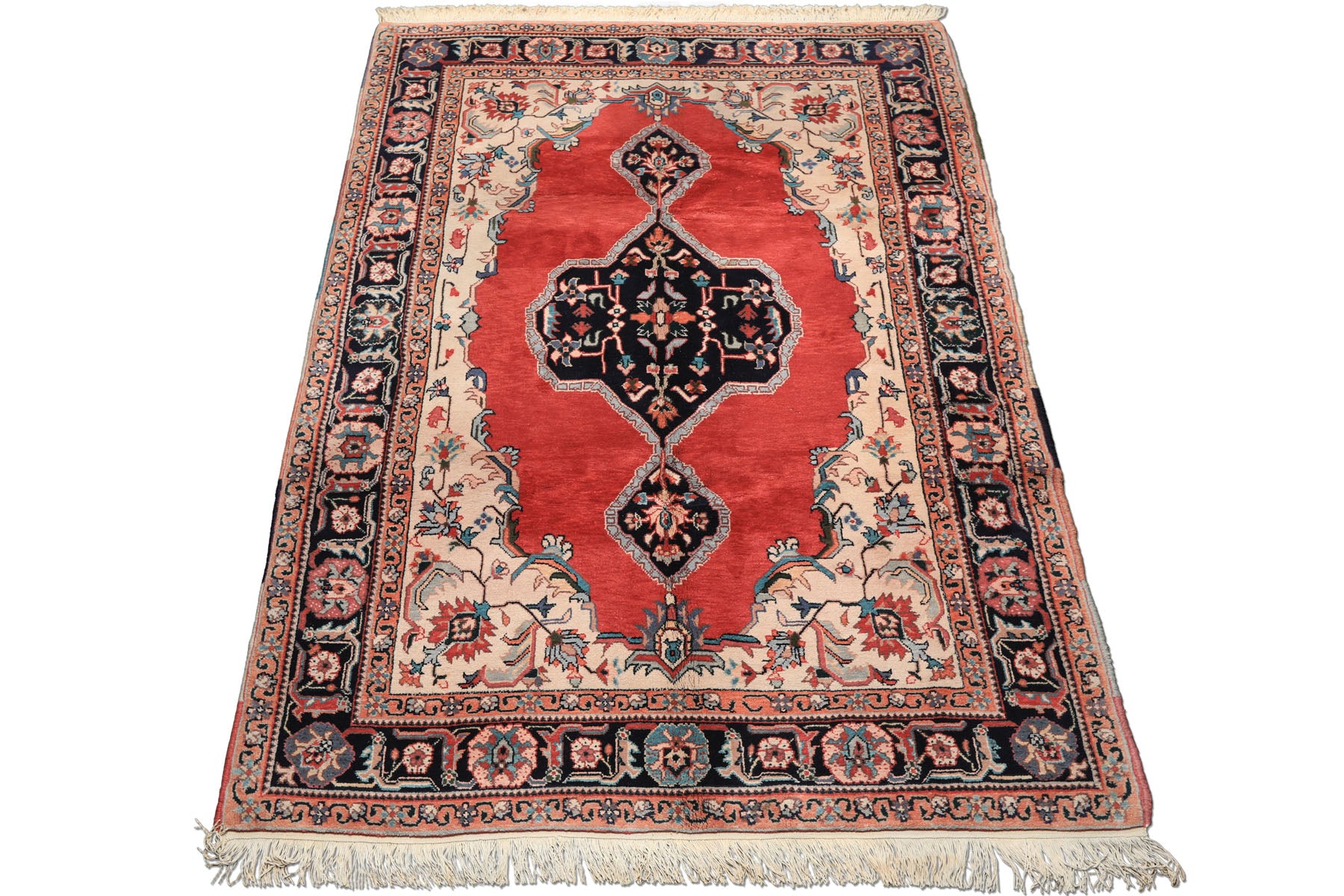 Story Behind the Art: Serapi rugs are among the most admired and collectible Persian rugs, traditionally woven in northwestern Iran near the town of Heriz. Often considered the finest early examples of Heriz weaving, Serapi rugs are distinguished by refined craftsmanship, harmonious color palettes, and distinctive medallion compositions. Some experts define Serapis as Heriz carpets produced 100 to 200 years ago, while others identify them by their unique structural and design characteristics. A classic Serapi rug typically features a large hexagonal central medallion with stepped outlines, pendant extensions, and well-balanced corner spandrels. The field is often rendered in soft madder red or pale blue tones, contrasted by a bold medallion. Celebrated for their balance of elegance and strength, Serapi rugs remain highly sought after in the global Oriental rug market.