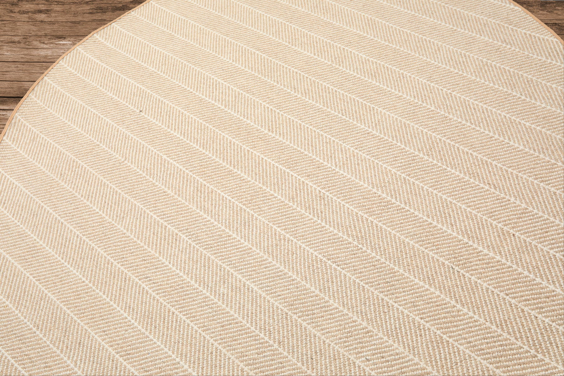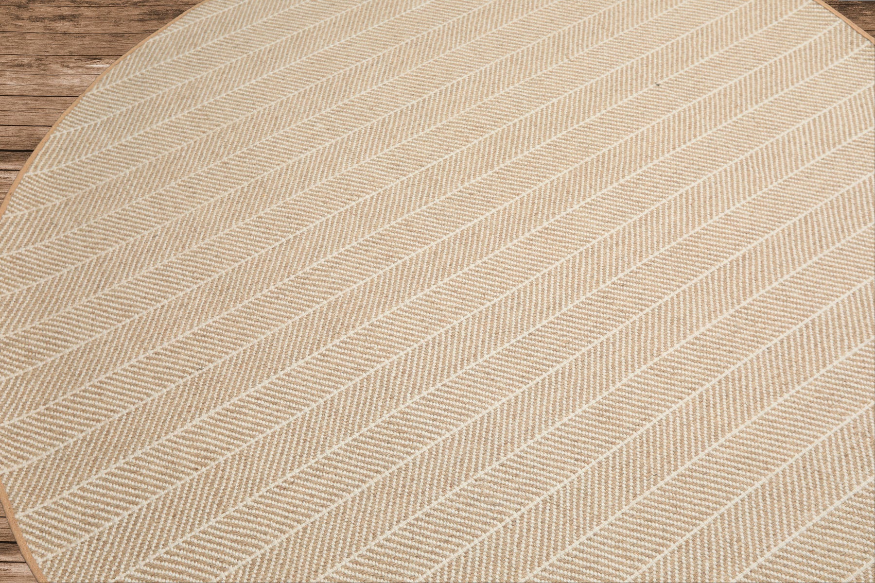 This 6'1'' × 6'1'' round hand-woven wool rug features a flatweave construction on a cotton foundation, offering durability with a clean, low-profile feel. The contemporary herringbone pattern radiates across the circular form, creating gentle movement and visual interest without excess ornamentation.