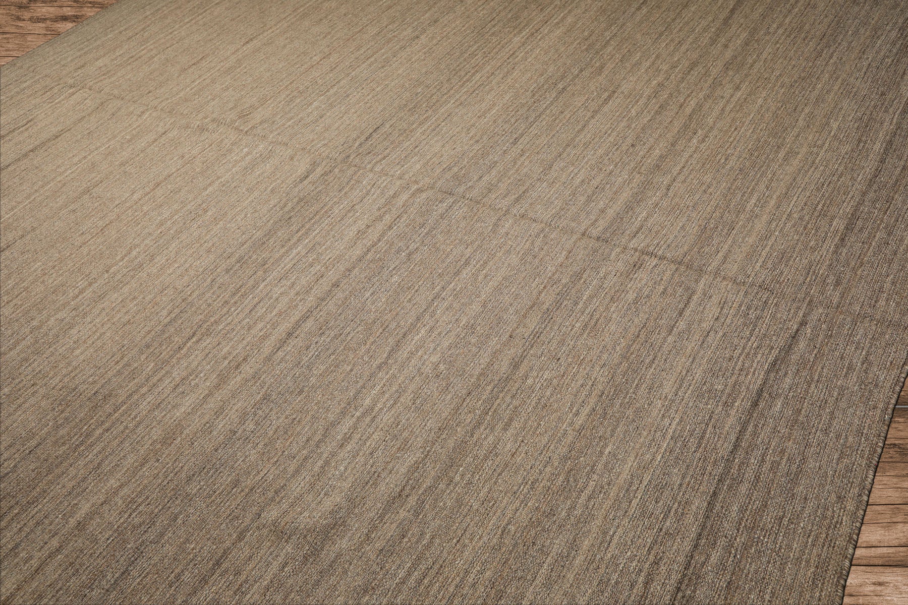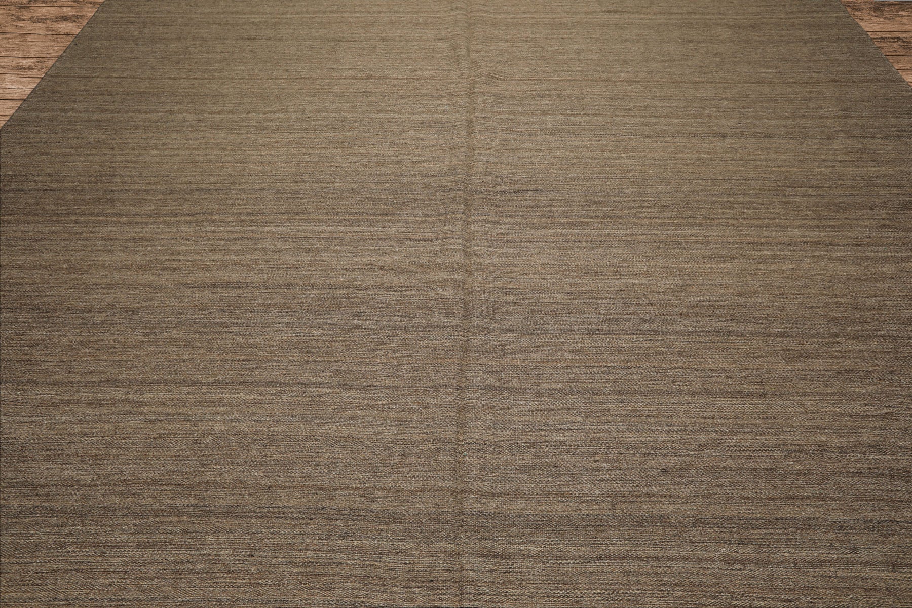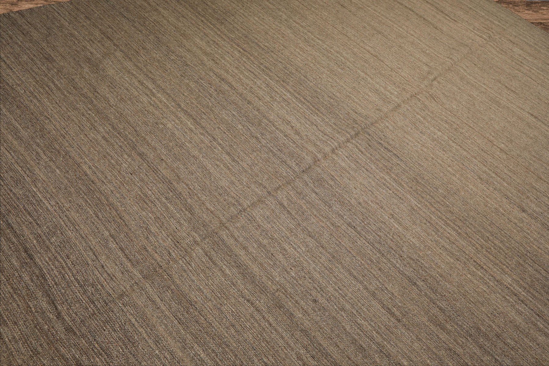 An exploration of texture and tone, this 10'1'' × 13'10'' handwoven flatweave Kilim rug defines modern minimalism. Crafted from fine taupe wool on a cotton base, its subtle color gradations and 0.25-inch flat profile create a serene visual flow. Devoid of ornament yet rich in tactile depth, it complements Scandinavian, Japandi, and organic-modern interiors. This artisan flatweave transforms simplicity into an art form, offering refined warmth and architectural clarity to any space.