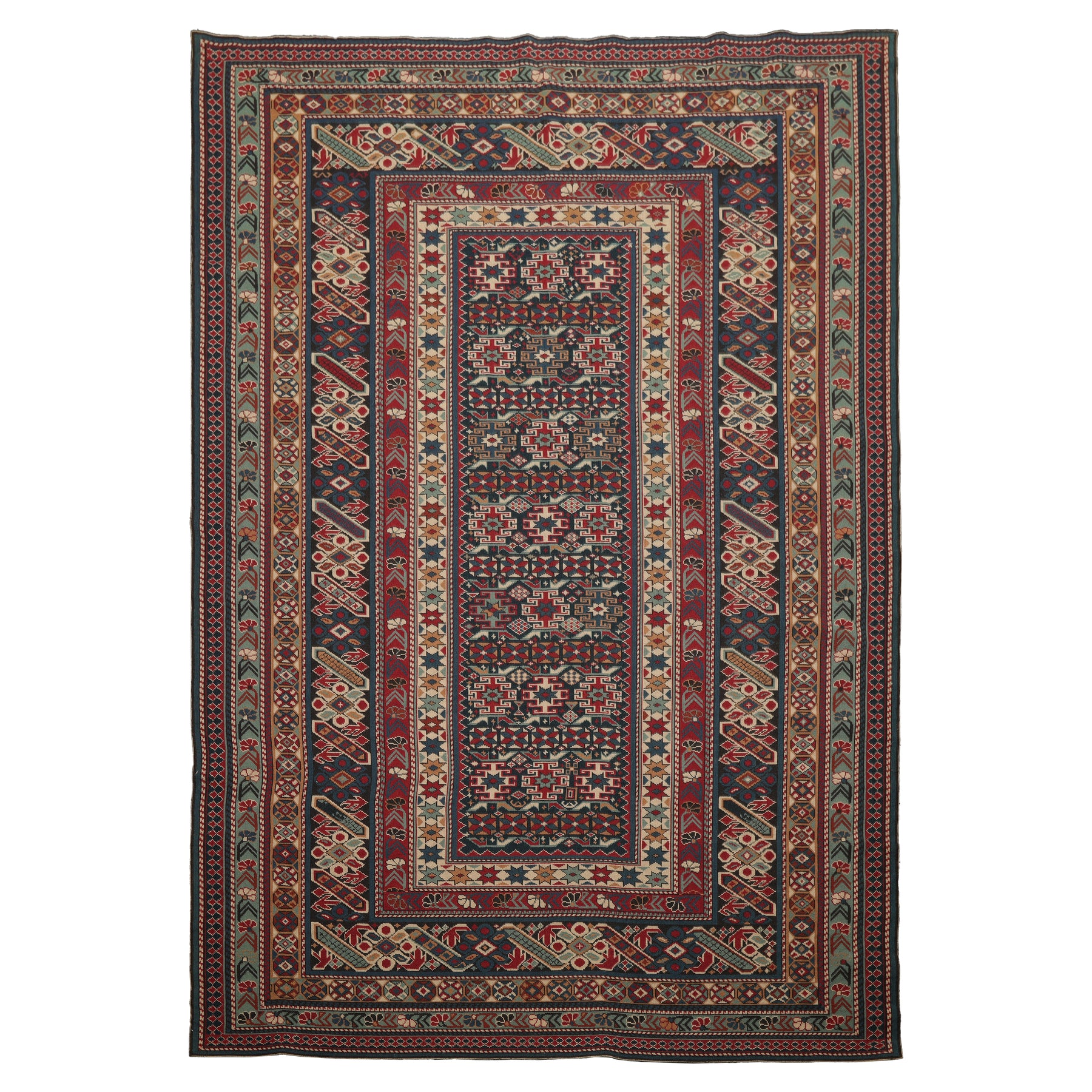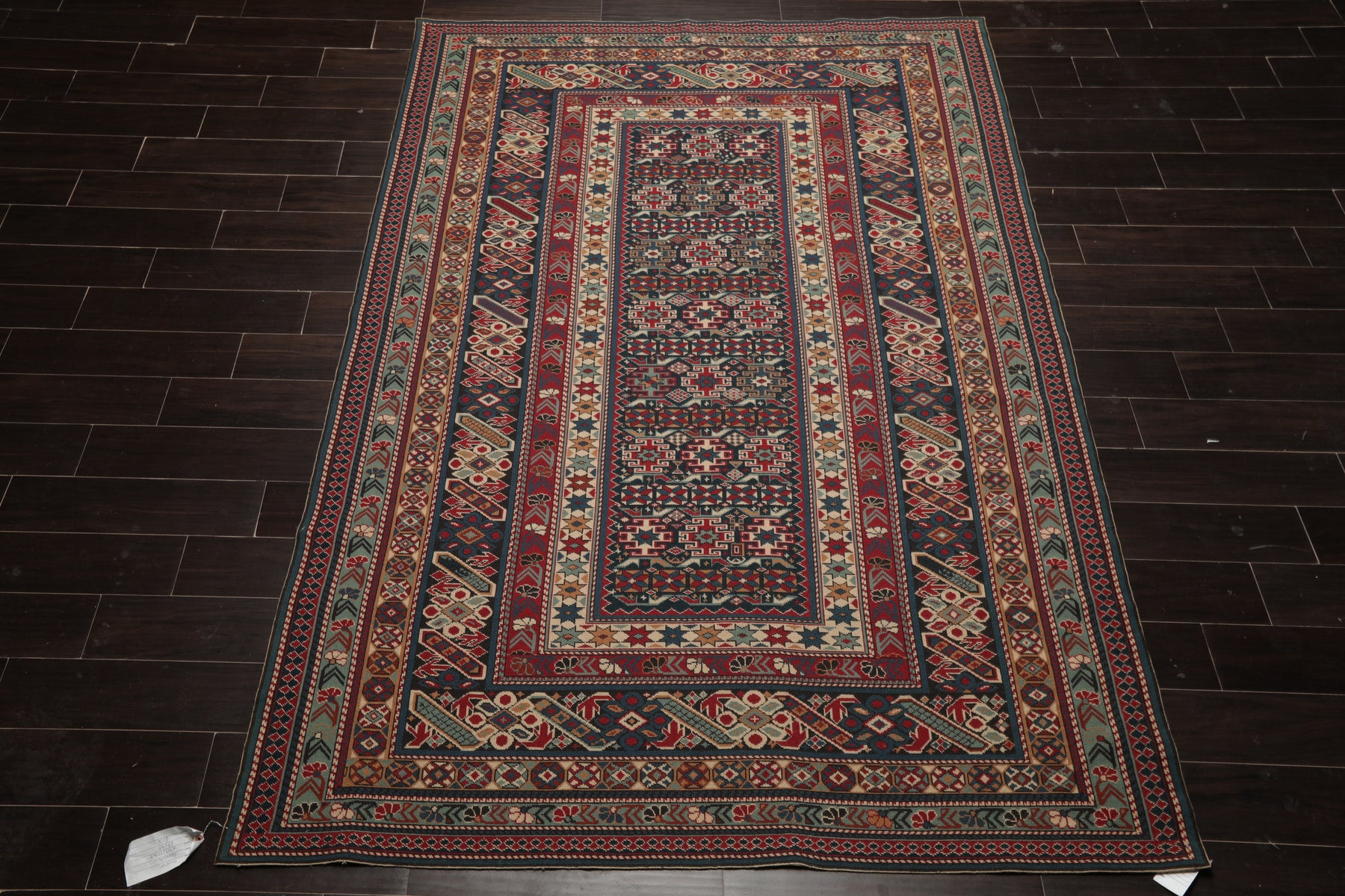 Handwoven in wool, this vibrant tribal Kilim rug features bold geometric motifs in teal, raspberry, ivory, and earth-tone accents. Its 0.1" flatweave profile and cotton foundation make it lightweight, durable, and easy to style beneath furniture or layered with other textiles. Perfect for eclectic, boho, or globally inspired interiors, this Kilim area rug enhances entryways, bedrooms, and living spaces with striking color and cultural character. Best suited for low to moderate traffic, it offers artistic charm and versatility in equal measure.