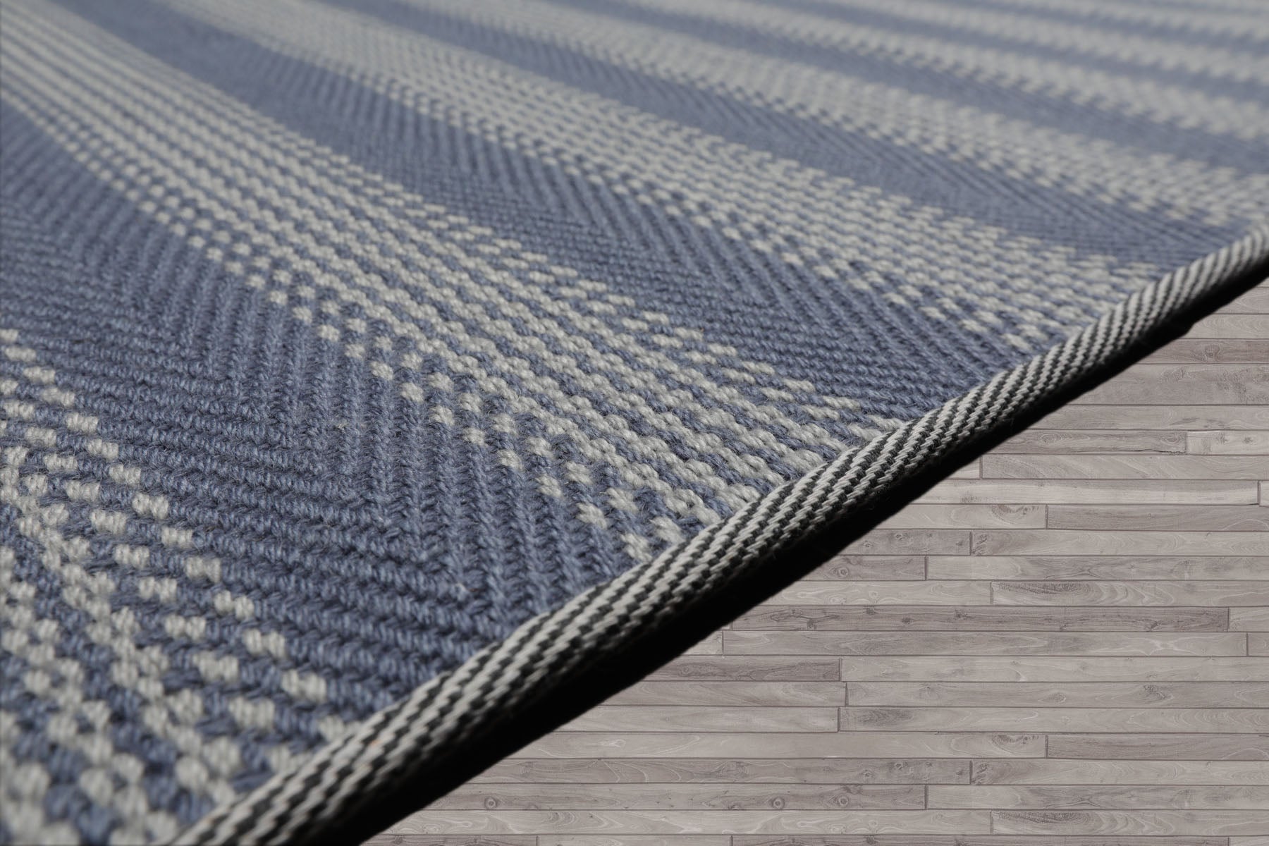 Bring an air of effortless style to your floor! With its fashionable herringbone pattern and striped design, this rug draws attention as a striking focal point, adding personality to any room. Its quarter-inch thickness and minimal shedding make it both practical and luxurious. Made from New Zealand wool, it offers plush comfort underfoot while withstanding high-traffic areas, improving with age.