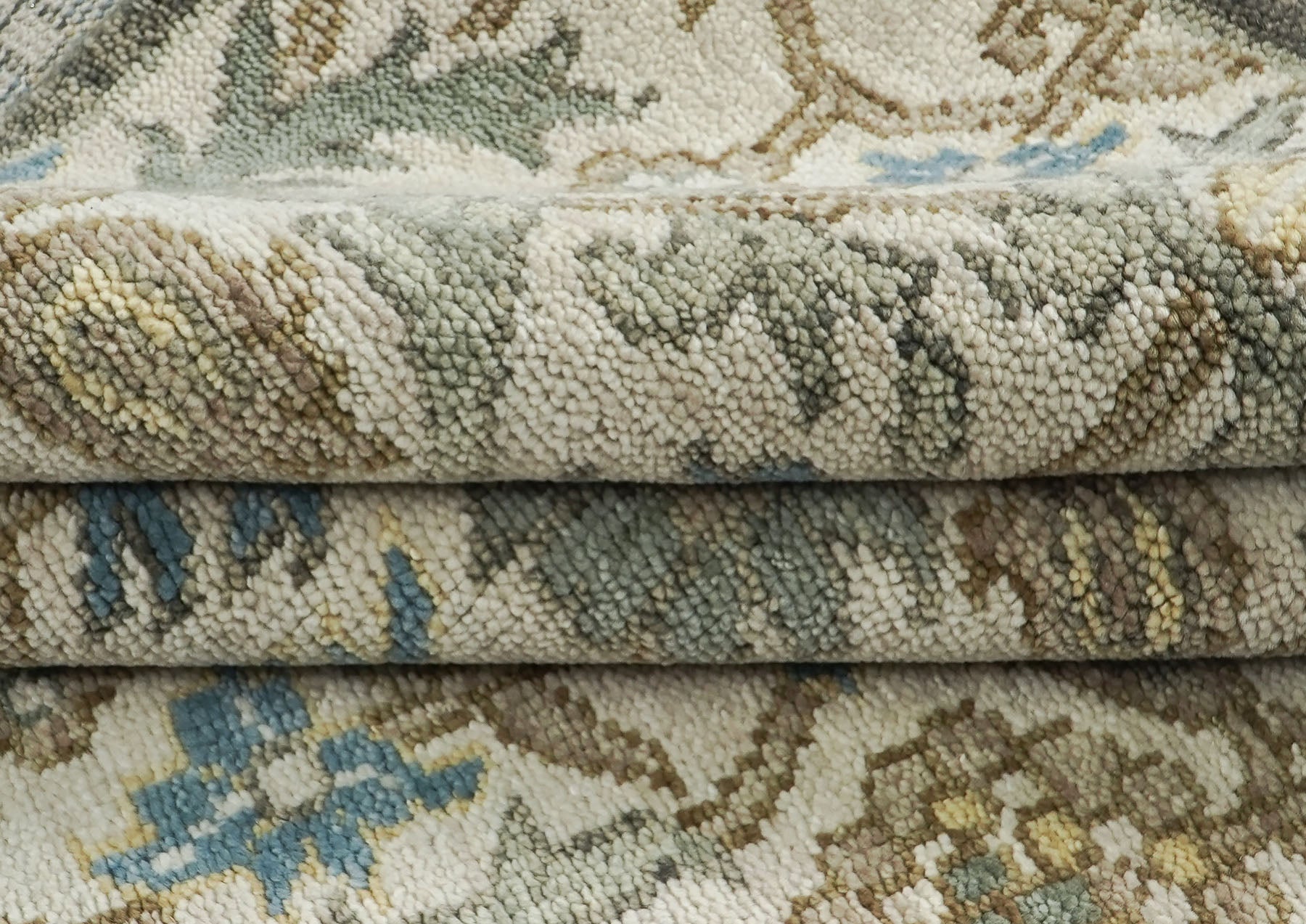 8x10 Beige, Blue, Gray Color Hand Knotted Oushak Wool Transitional Oriental Rug