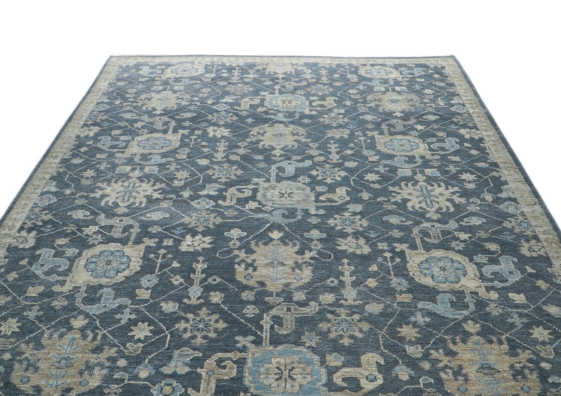 10x14 Blue, Beige, Moss Color Hand Knotted Oushak Wool Arts and Crafts Oriental Rug