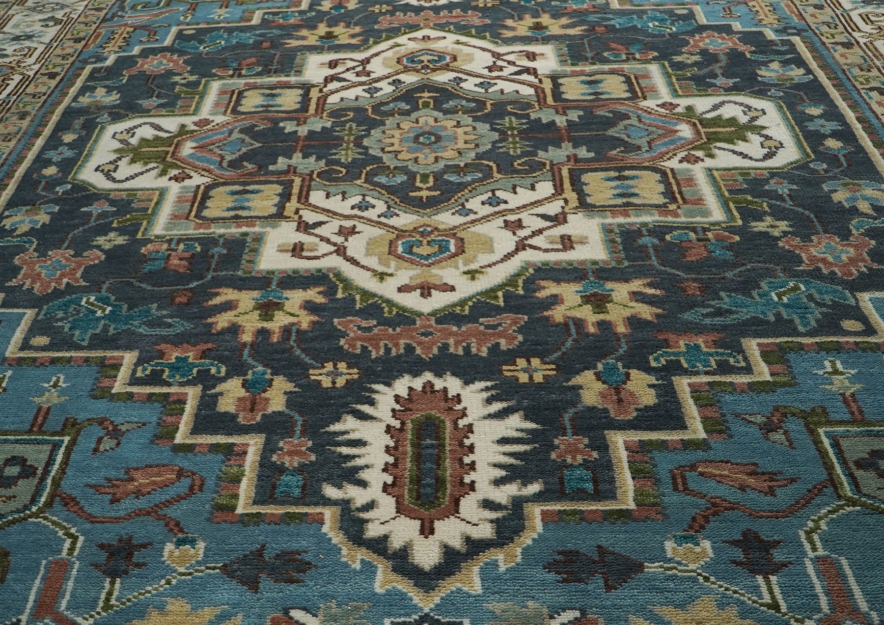 Story Behind the Art: Heriz rugs, originating from the northern Iranian region near Tabriz, are known for their bold, geometric artistry and incredible durability. Crafted with high-quality wool that is rich in natural lanolin, these rugs are designed to withstand the test of time. The striking angular medallions, surrounded by stylized leaves and bold motifs, create a commanding presence on any floor. With a color palette that includes deep reds, indigos, ivory, and earthy tones, Heriz rugs embody the architectural beauty of traditional Persian weaving. Their strength and dramatic visual appeal make them timeless works of art, often admired for both their durability and stunning presence in both practical and refined interiors.
