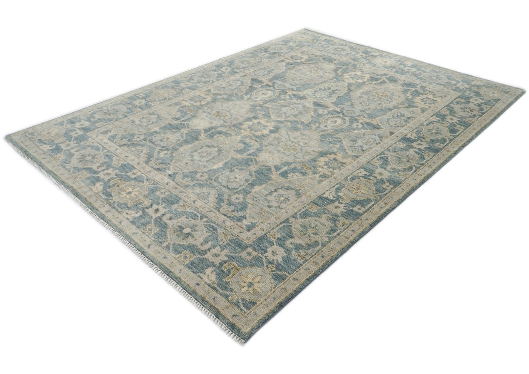 9x12 Blue, Slate, Beige Color Hand Knotted Oushak Wool Transitional Oriental Rug