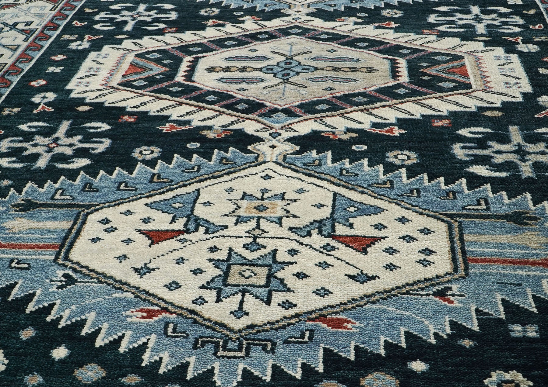 Story Behind he Art: Southwestern rug design traces its origins to the rich textile traditions of Native American tribes from the American Southwest, particularly the Navajo (Diné), Pueblo, and Hopi peoples. These tribes have been weaving for centuries, creating handwoven rugs from hand-spun wool dyed with natural pigments sourced from plants, minerals, and insects. This traditional dyeing process gives Southwestern rugs their distinct, earthy color palettes, which reflect the region's natural beauty. A key feature of these rugs is their reliance on bold geometric patterns. These designs often incorporate repeating elements like diamonds, zigzags, stepped shapes, crosses, and linear motifs, with symmetry and repetition being fundamental to the visual style. The use of color is crucial in Southwestern designs, with traditional color schemes featuring earthy tones like clay red, sand, charcoal, ivory, indigo, and muted blues. These colors are inspired by the desert landscape, the sky, stones, and the soil of the Southwest. As the design has evolved, particularly in contemporary adaptations, the color palettes have become softer, incorporating shades like washed grays, pale blues, and other neutral tones. These adjustments allow the rugs to retain their cultural essence while making them more suitable for modern interiors, ensuring their timeless appeal continues to resonate with contemporary decor.
