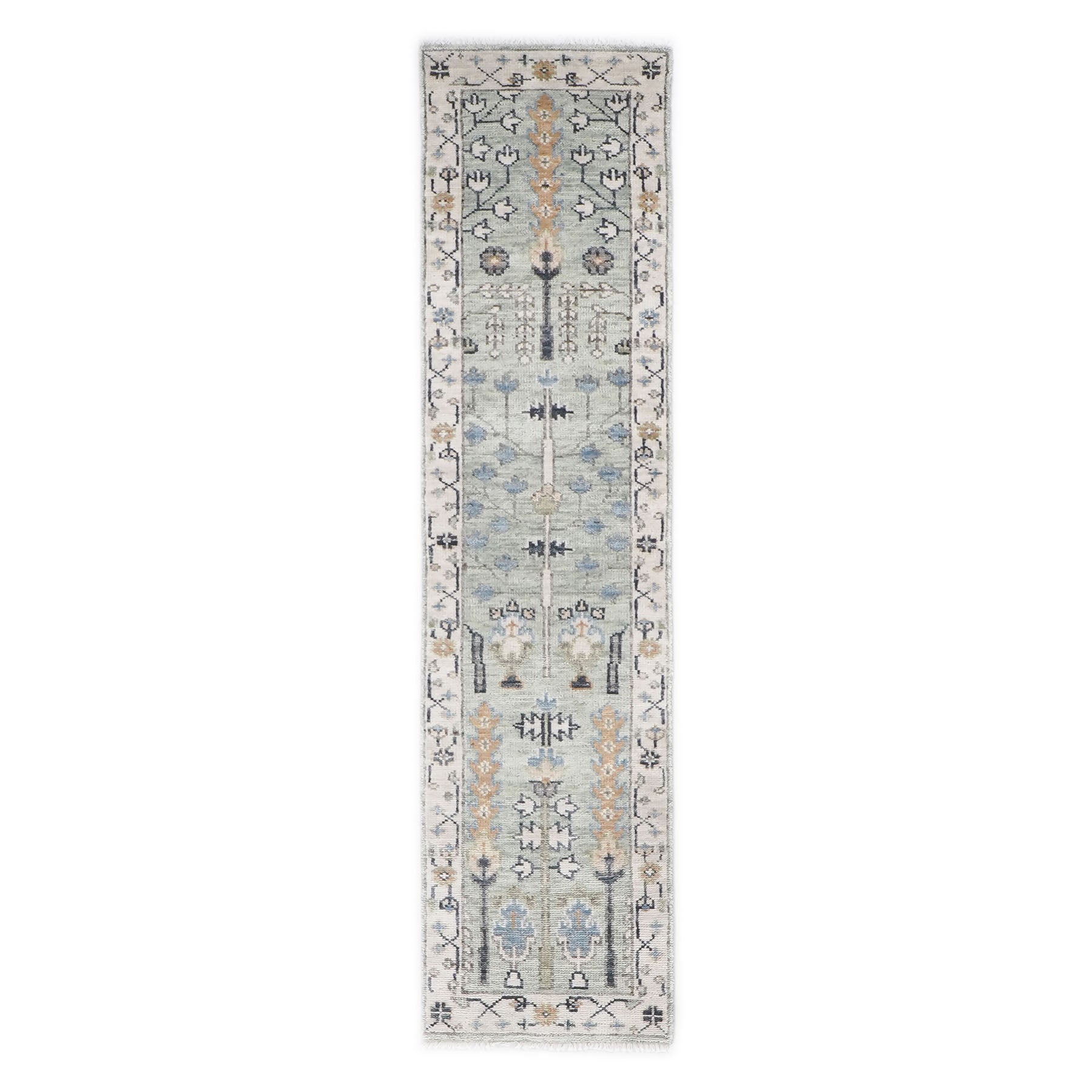Runner Gray, Beige, Blue Color Hand Knotted Oushak Wool Transitional Oriental Rug