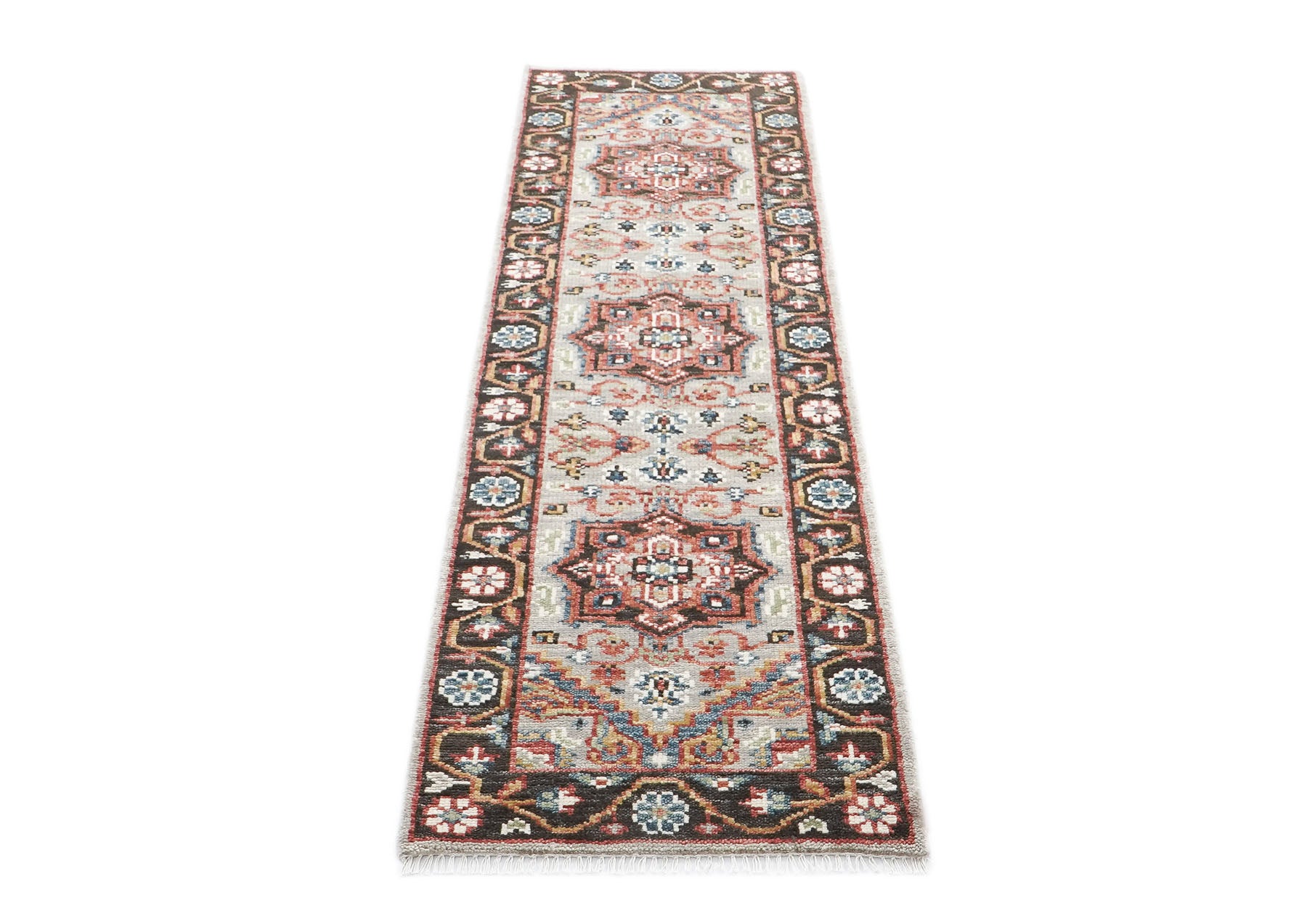 Celeste Rugs 2'6''x10'2'' Runner Gray, Rust Oushak Hand Knotted Wool Traditional Oriental Area Rug