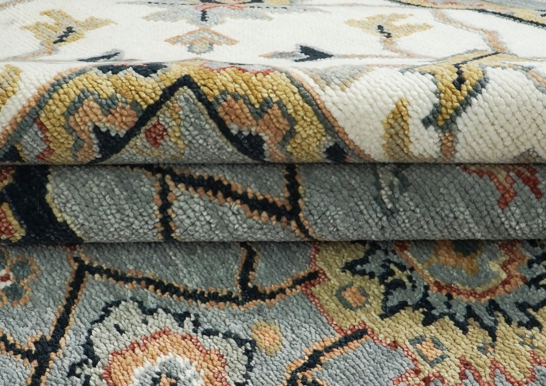 12x15 Slate, Ivory, peach Color Hand Knotted Oushak Wool Arts and Crafts Oriental Rug