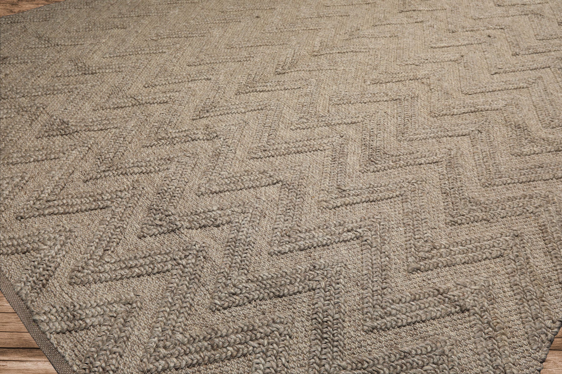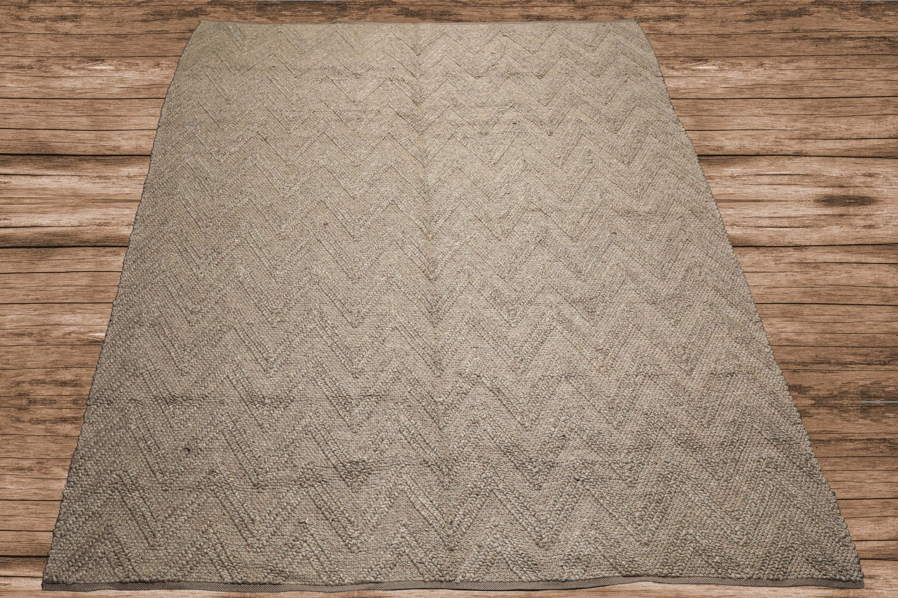 Woven with understated elegance, this 9x12 hand-knotted flatweave wool rug in tone-on-tone mocha celebrates the beauty of subtle texture and modern sophistication. Handcrafted on a durable cotton foundation, it features a braided high-low pile forming a sculptural chevron pattern that shifts gracefully with changing light, adding depth and quiet movement to its refined surface.