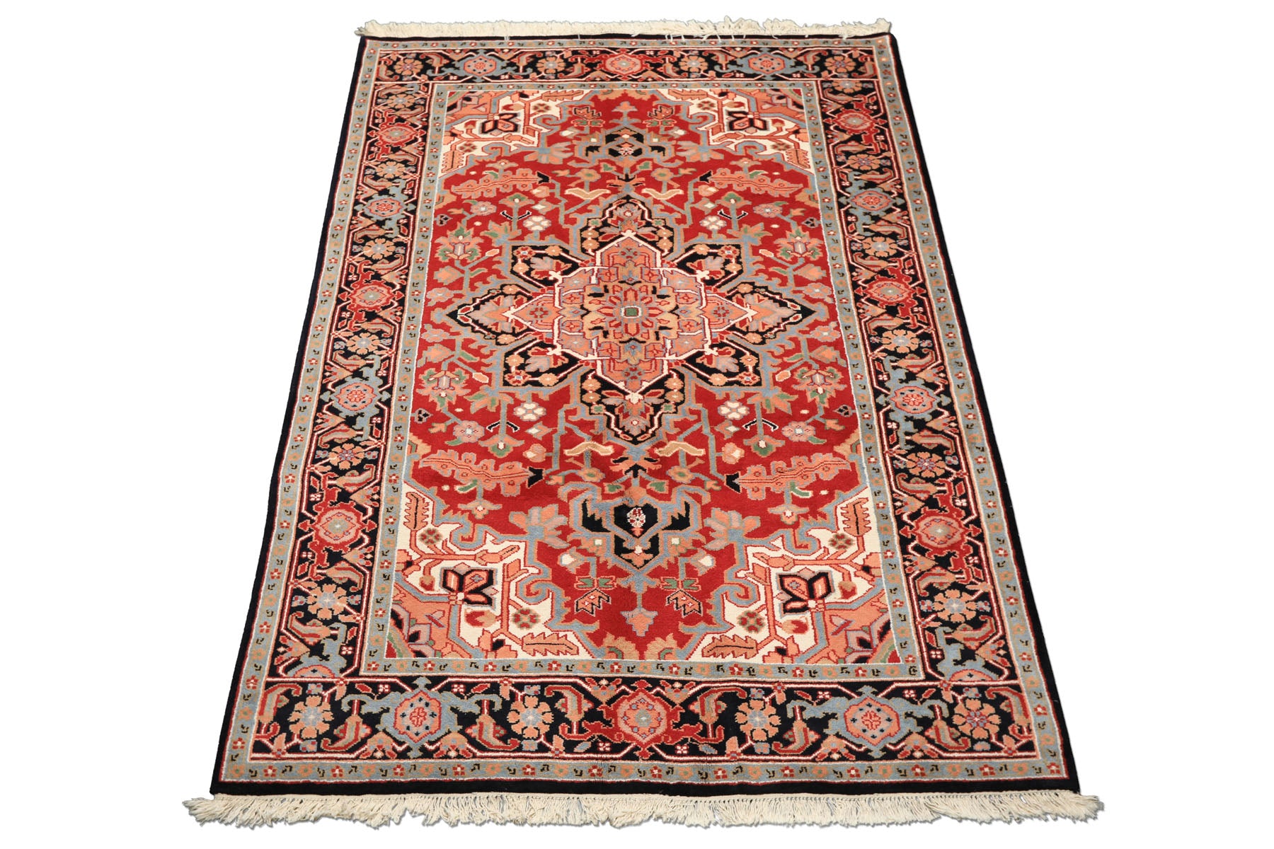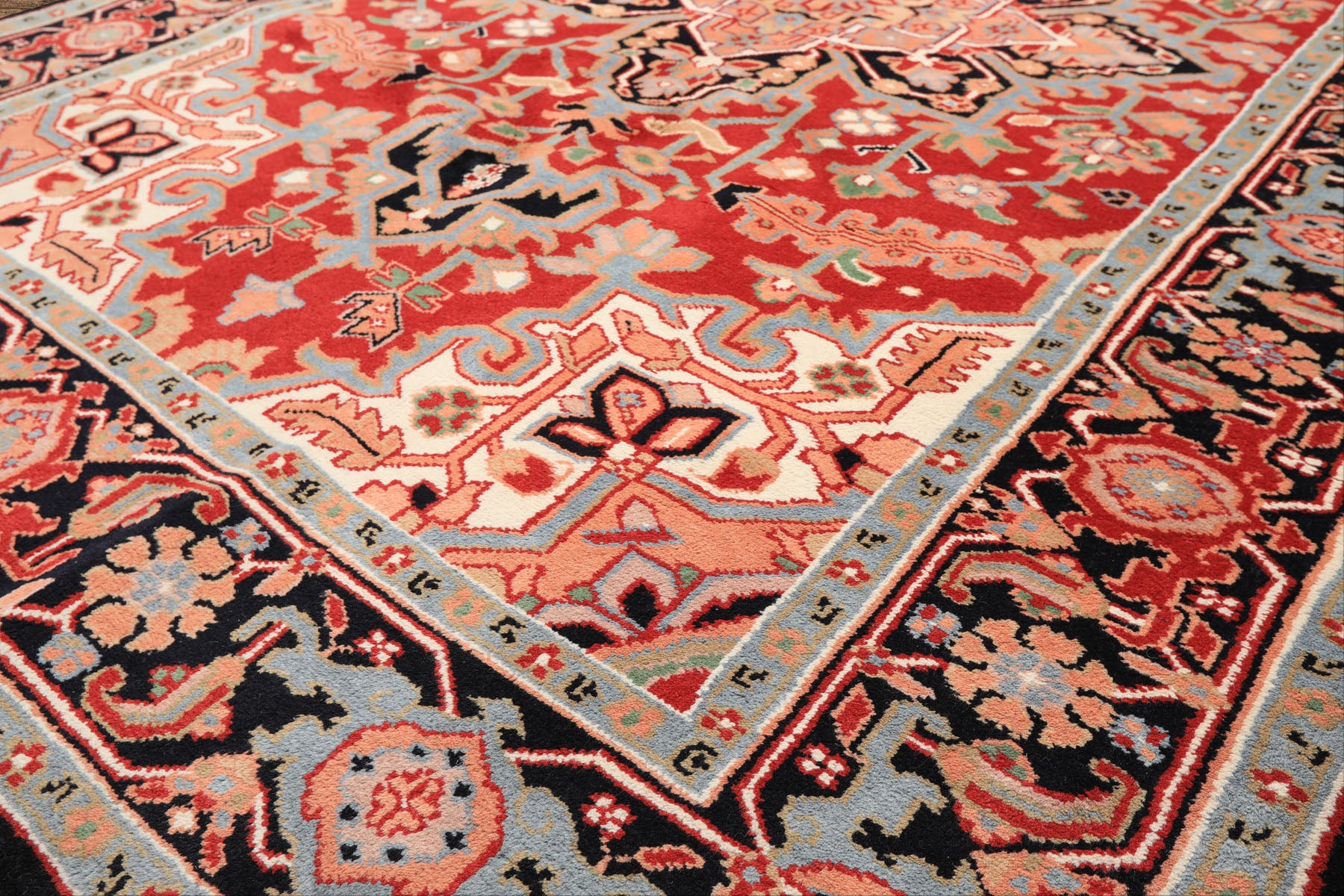 6x9 Red, Aqua, Blush Color Hand Knotted Indo Heriz Wool Traditional Oriental Rug